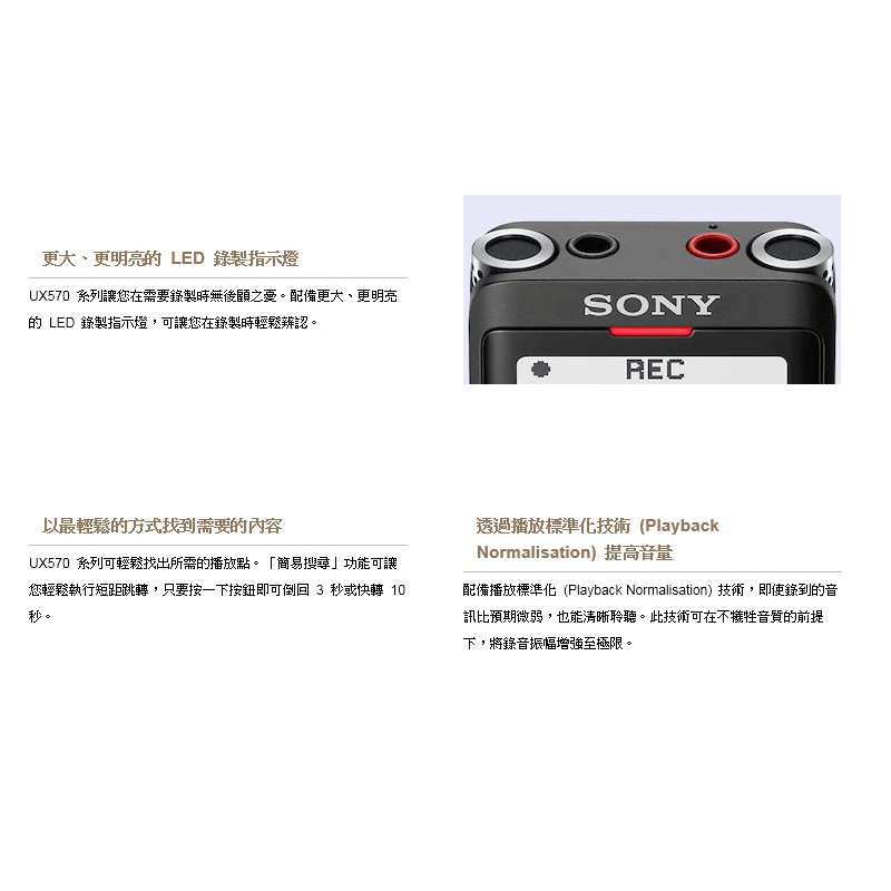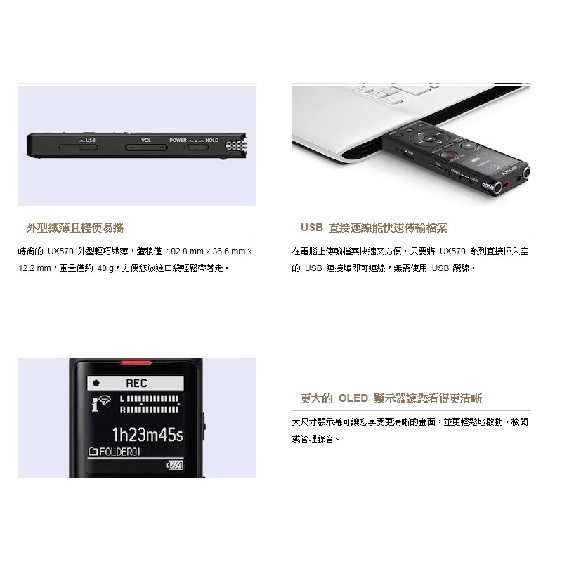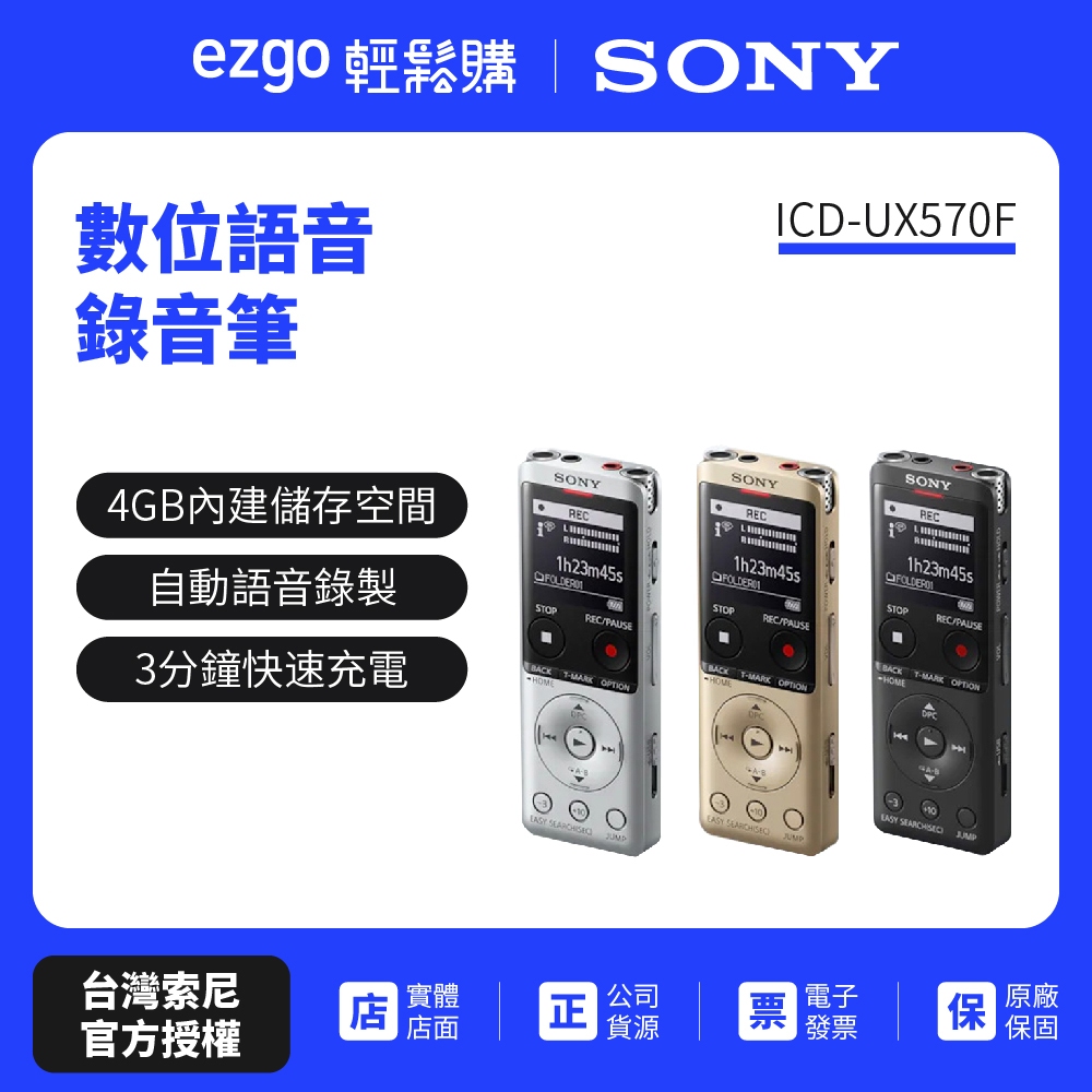 SONY 數位語音錄音筆 ICD-UX570F 4GB(公司貨保固一年)銀色|黑色|金色Voice RecordersEZGO輕鬆購