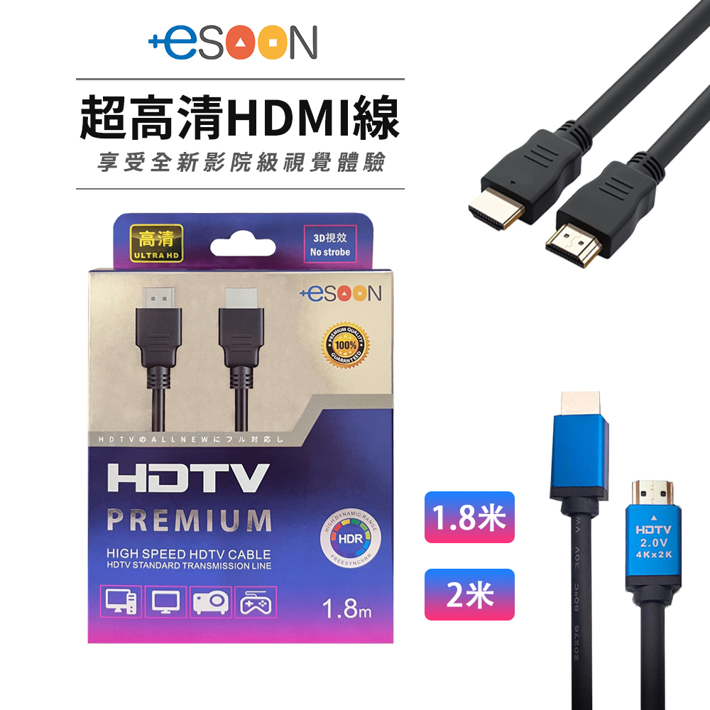 【esoon】HDMI 4K 2.0 高清線 台灣現貨 支援PS5 高清螢幕線 電視傳輸線 轉接線 螢幕線 HDMI線HDMI 2米視頻轉接線 2.0版|Switch轉換器Tc專用線1.2米|HDMI 1.8米視頻轉接線 1.4版esoon量販3C電玩商城