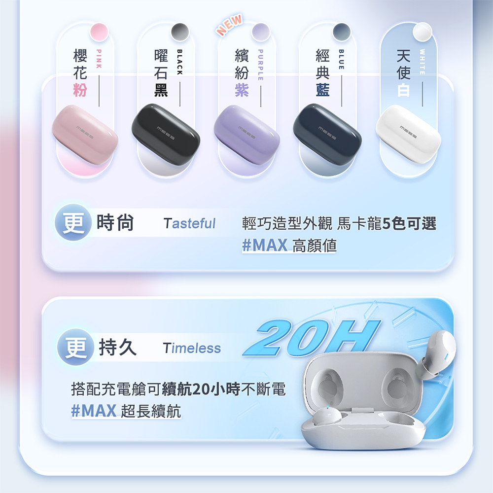 隔日到貨 MEES T6 Max 無線藍牙耳機 Bluetooth 運動 防水 耳機 觸控 無線耳機 電競耳機 蘋果安卓T6max 黑色|T6max 白色|T6max 藍色|T6max 紫色|T6max 粉色Crazy GoGo 3C精品配件