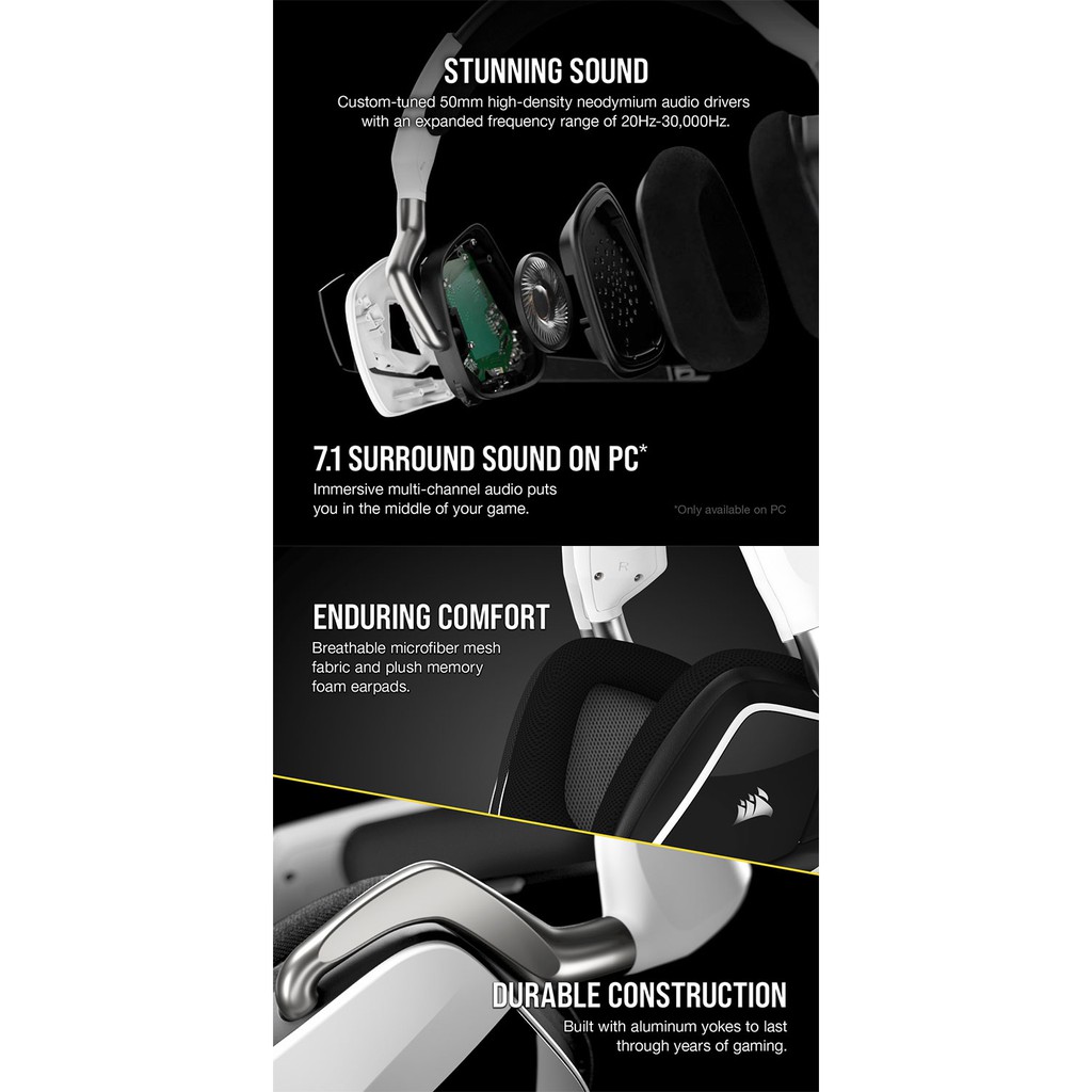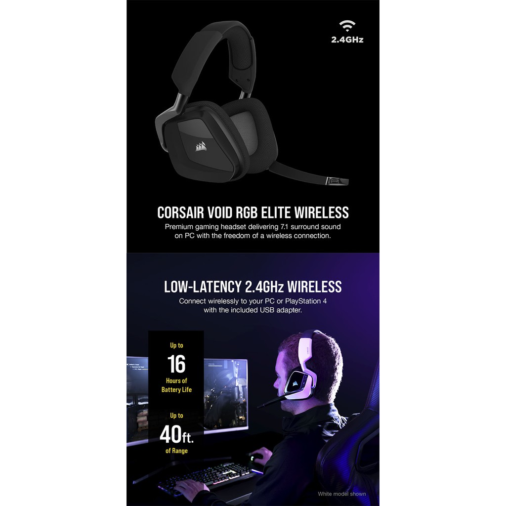 海盜船 CORSAIR VOID RGB ELITE 無線電競耳機 官方旗艦館碳灰【RGB無線】|白【RGB無線】CORSAIR 官方授權旗艦店
