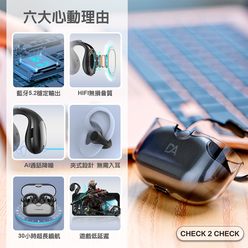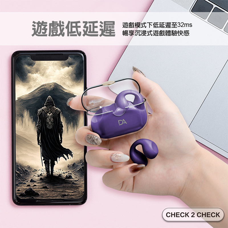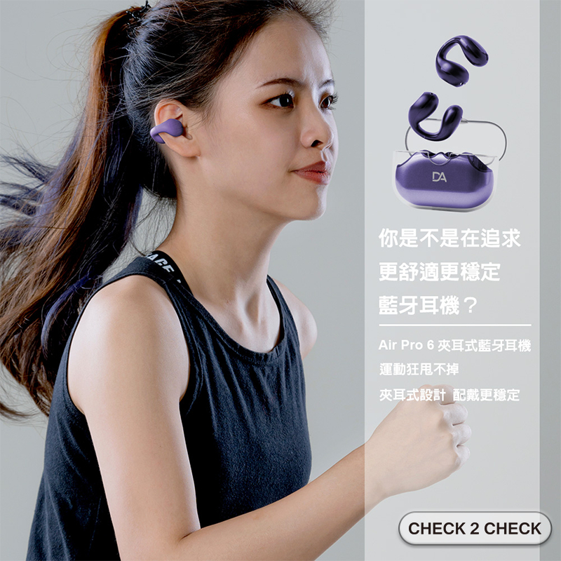 DA-Air Pro6夾耳式藍牙耳機 不入耳 無線觸控耳機 防水運動耳機【L2403C00002】[現貨] 禁外島質感灰|天使白|浪漫紫|夢幻粉CHECK 2 CHECK官方旗艦店