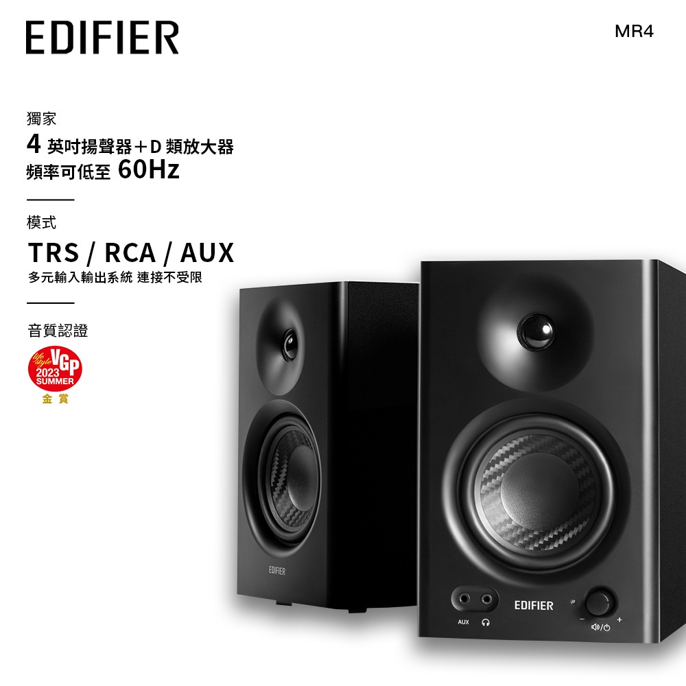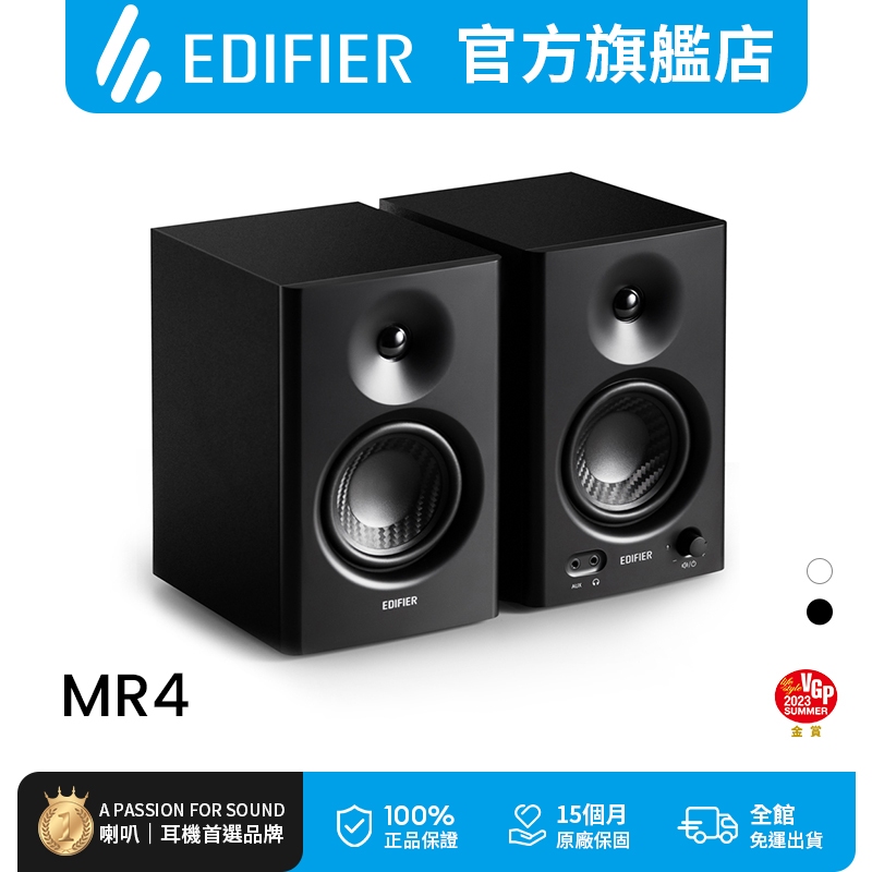 【EDIFIER】MR4 專業監聽喇叭 桌上型音箱音響 錄音室設備 音樂 平衡輸入 內附線材可直接使用黑色|白色SpeakersEDIFIER 官方旗艦店