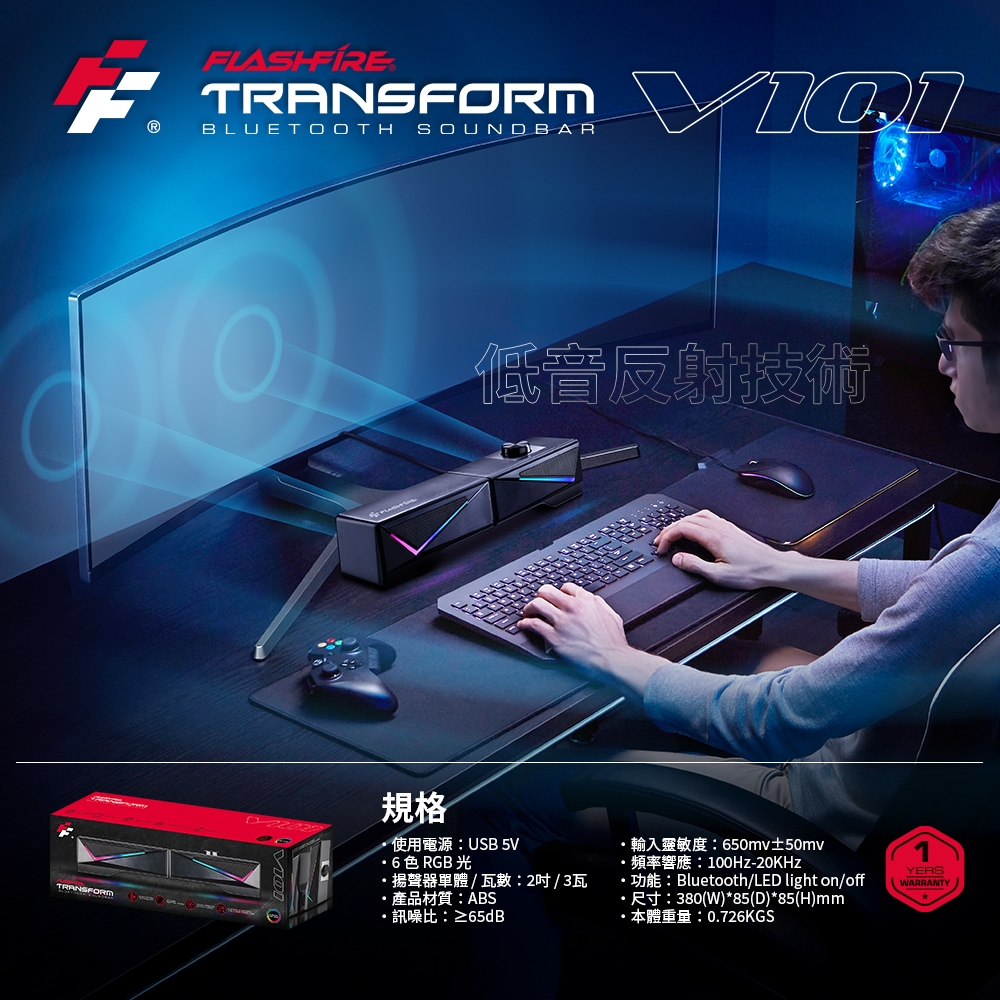 Flashfire V101 電競變形藍芽喇叭 聲霸 soundbar 音響Flashfire V101 電競變形藍芽喇叭 聲霸 soundbar 音響SpeakersFlashFire富雷迅-遊戲硬體週邊