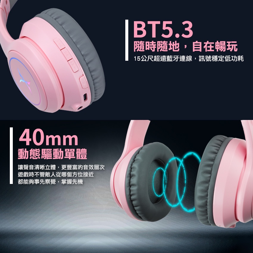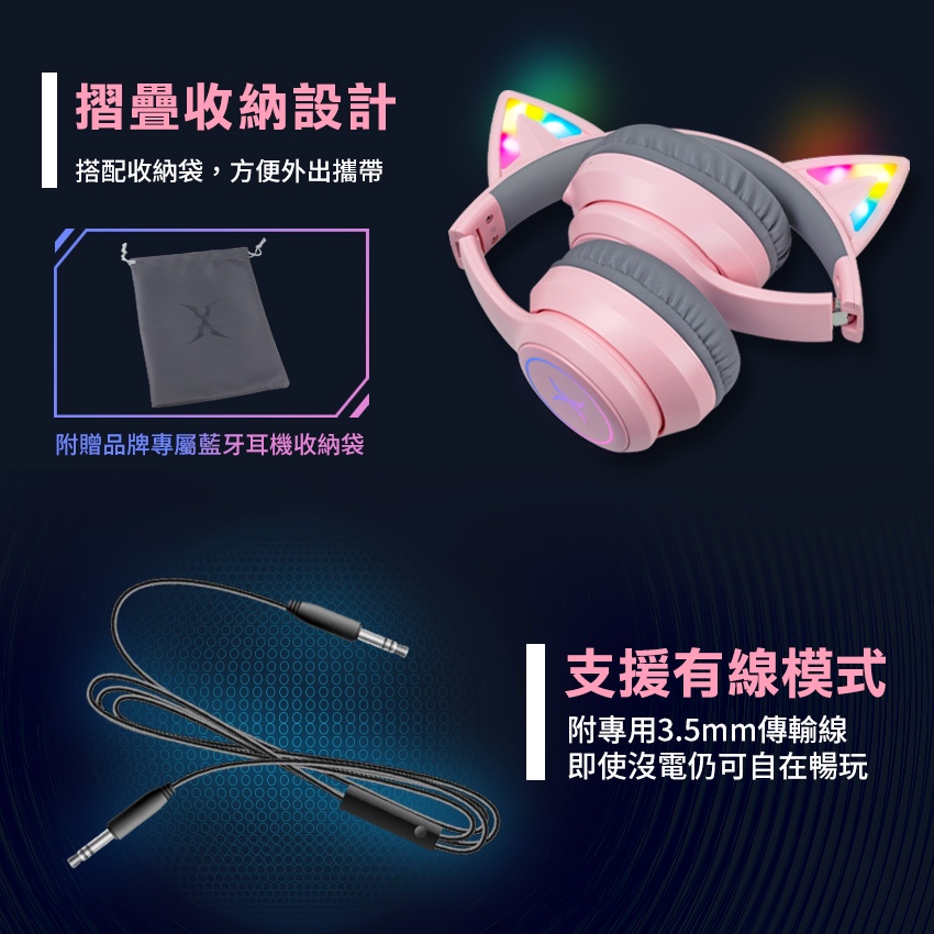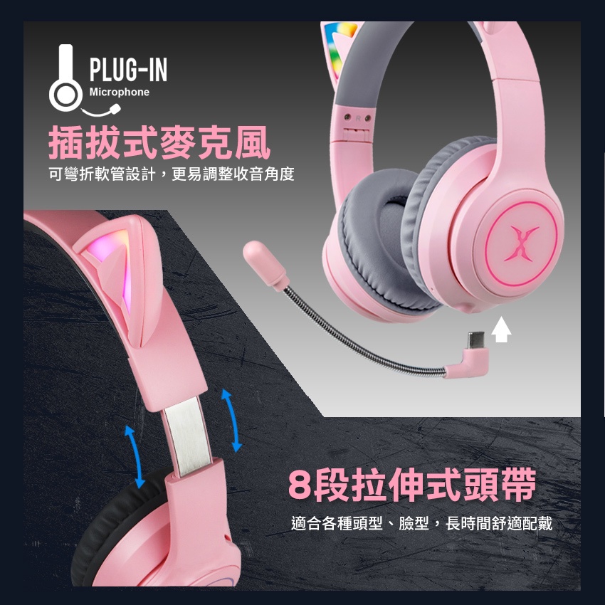【Foxxray】FXR-HAB-10 炫喵響狐 萌萌貓耳 藍牙+有線 兩用 電競耳機 超低延遲黑色|粉色FoxXRay狐鐳 官方旗艦店