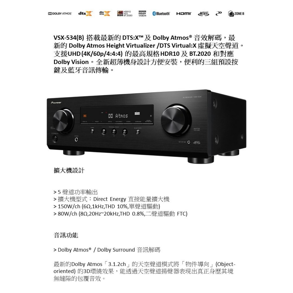 (領劵蝦幣回饋10%)Pioneer先鋒5.2聲道 AV環繞擴大機VSX-534(B)公司貨 送HDMI線(領劵蝦幣回饋10%)Pioneer先鋒5.2聲道 AV環繞擴大機VSX-534(B)公司貨 送HDMI線EZGO輕鬆購