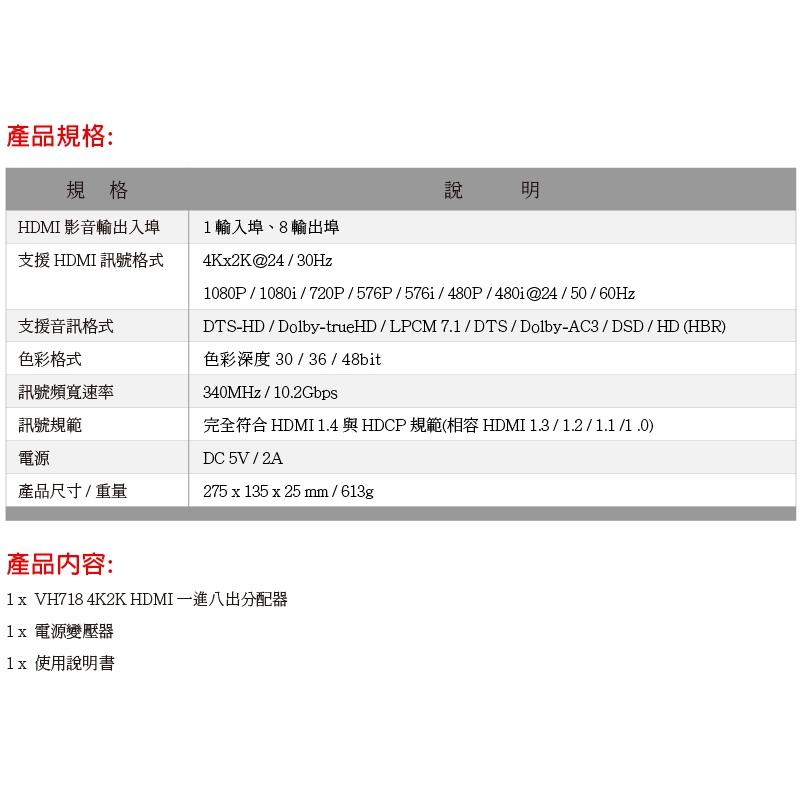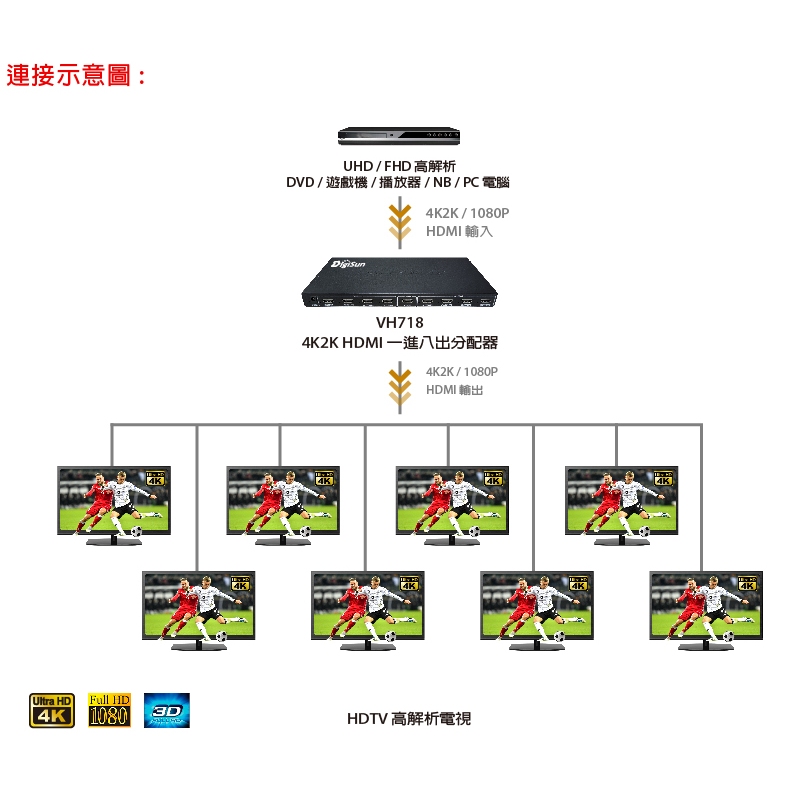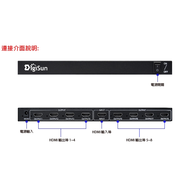 DigiSun VH718 4K2K HDMI 一進八出影音分配器DigiSun VH718 4K2K HDMI 一進八出影音分配器DigiSun 得揚科技旗艦店