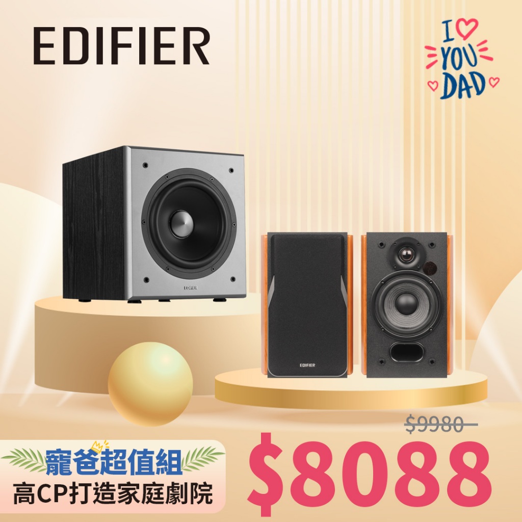 【EDIFIER】寵爸限定套組 R1380DB 2.0聲道藍牙喇叭+T5 主動式超重低音喇叭木紋|黑色SpeakersEDIFIER 官方旗艦店