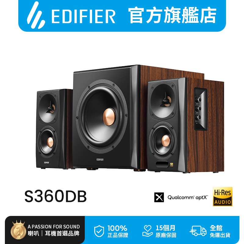 【EDIFIER】S360DB 2.1聲道藍牙喇叭 主動式音響 無線重低音音箱 三件式揚聲器【EDIFIER】S360DB 2.1聲道藍牙喇叭 主動式音響 無線重低音音箱 三件式揚聲器SpeakersEDIFIER 官方旗艦店