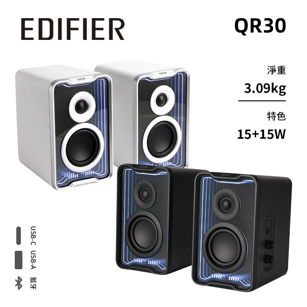 【EDIFIER】QR30 2.0 桌面藍牙喇叭 電腦喇叭 藍芽喇叭 雙聲道音箱黑色|白色SpeakersEDIFIER 官方旗艦店