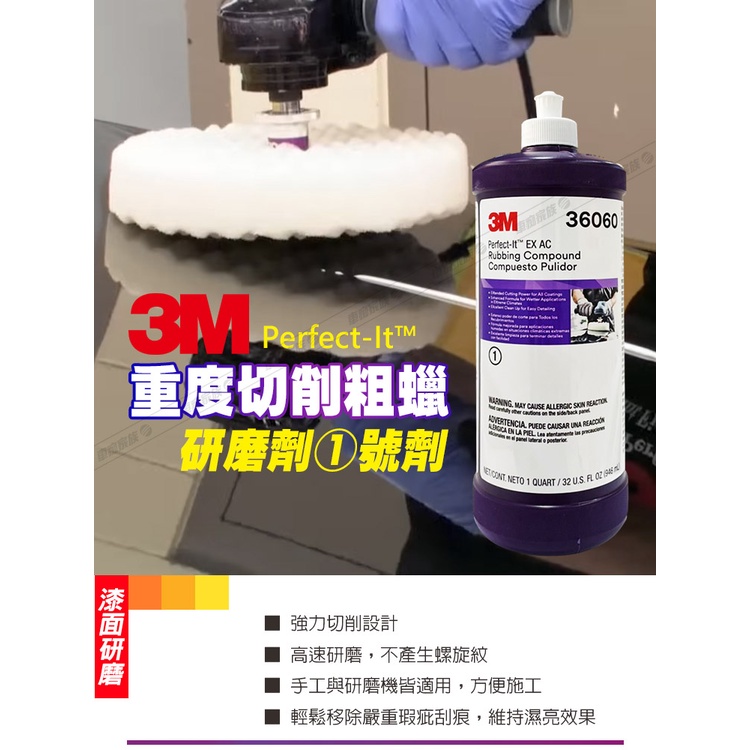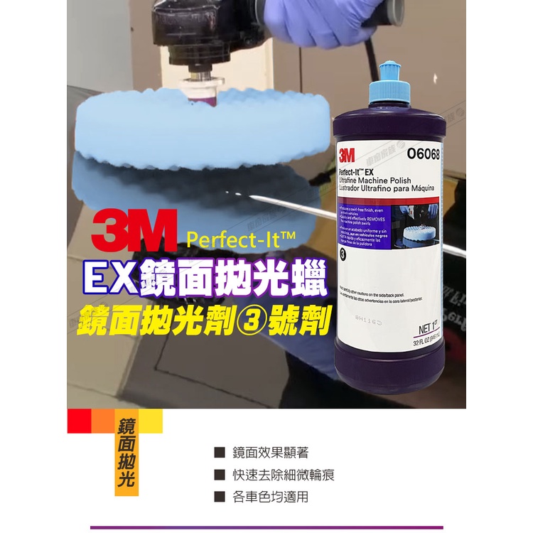 3M Perfect-It™ EX 切削粗蠟 研磨劑 拋光蠟 粗蠟 36060 06094 06068 06085公司貨拋光蠟/拋光劑 (2號劑) 06094|鏡面拋光蠟 (3號劑) 06068|重度切削粗蠟(1號劑/加強版)36060|輕度切削粗蠟 (1號蠟) 06085Wash & WaxesCARBUFF 車痴汽車用品