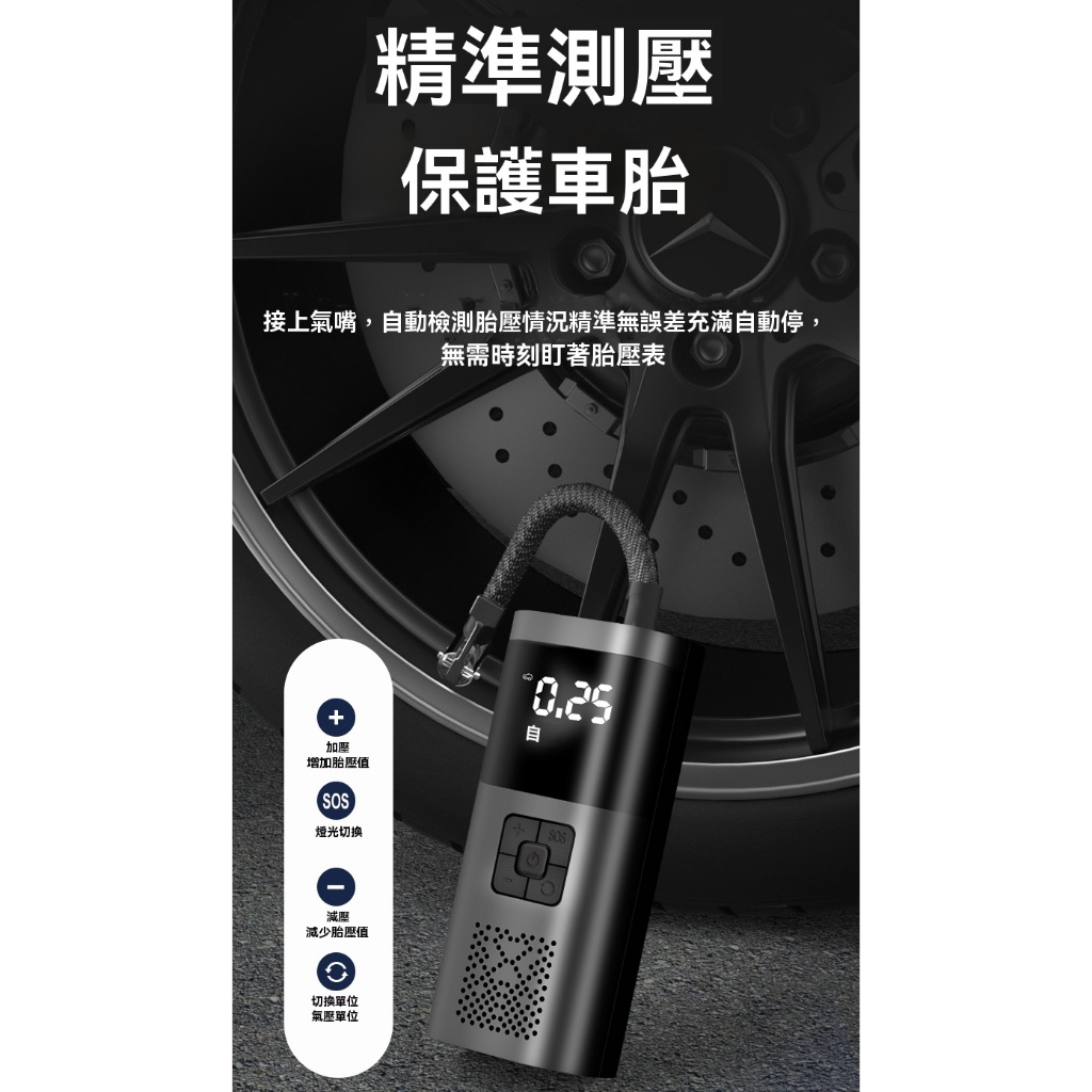 強力打氣霸王 雙電源打氣機 無線打氣機 多功能打氣機 偵測胎壓 充氣寶 完勝小米 攜帶式打氣筒 自動充停 胎壓偵測器無線款-A3|車用12v電源線款(只能插著點菸器用)Tire Pressure DetectorsDUNU Lab