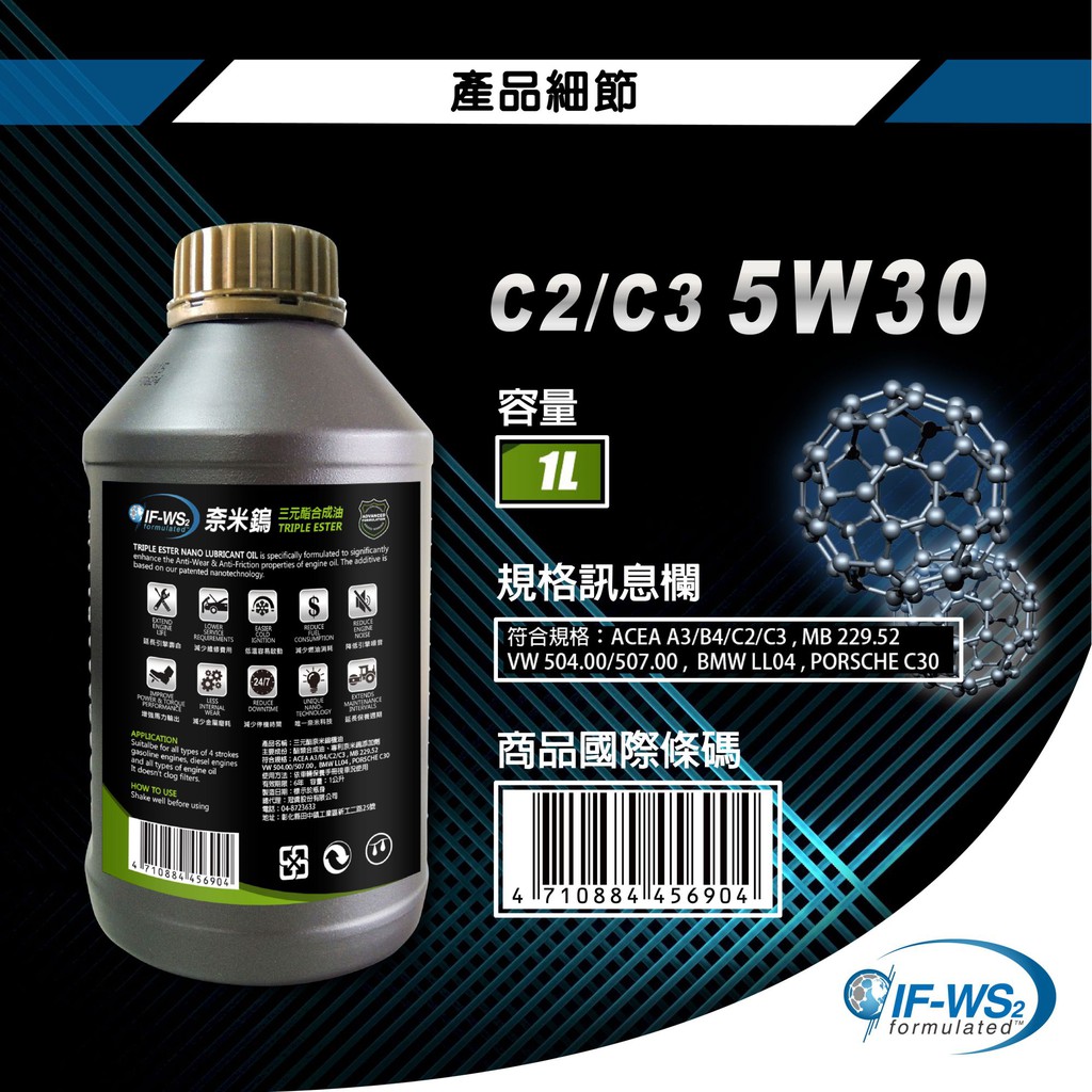 【車百購】 NanoLub IF-WS2 5W30 C2/C3 奈米鎢三元酯全合成汽柴油引擎機油 競技引擎機油【車百購】 NanoLub IF-WS2 5W30 C2/C3 奈米鎢三元酯全合成汽柴油引擎機油 競技引擎機油OilsCARPARTGO 車百購