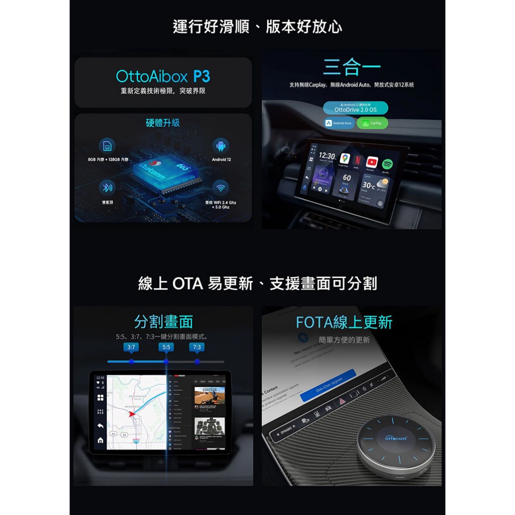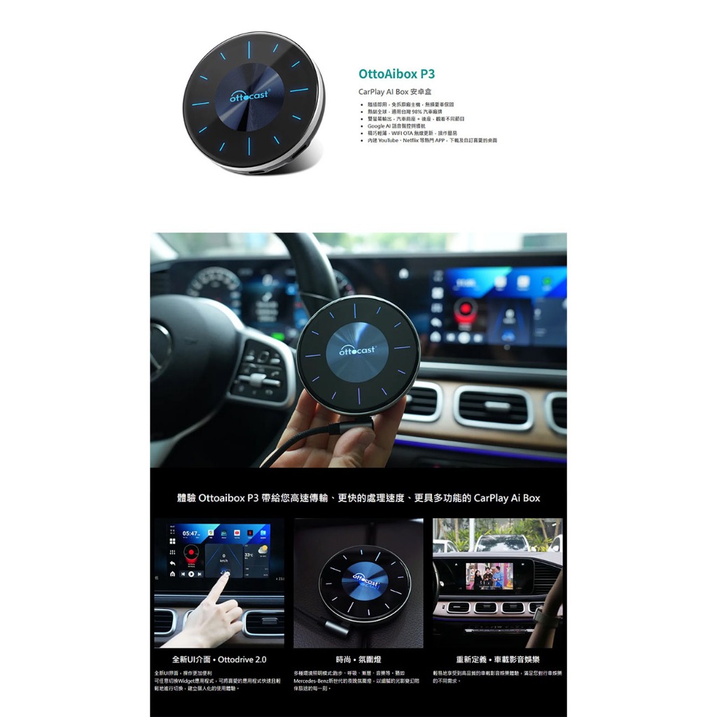 OttoAibox P3 CarPlay AI Box安卓盒子加贈冰感手持隨身風扇(原廠公司貨)