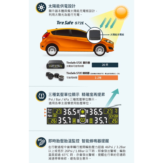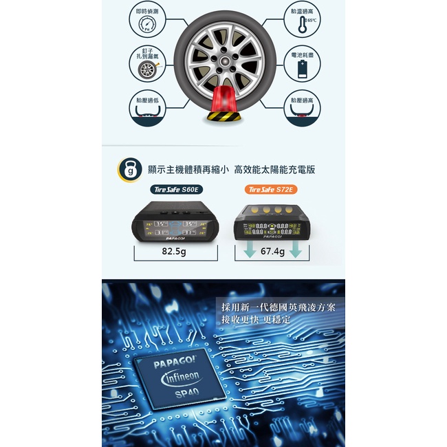 PAPAGO TireSafe S72E無線太陽能胎外式輕巧胎壓偵測器 兩年保固(原廠公司貨)