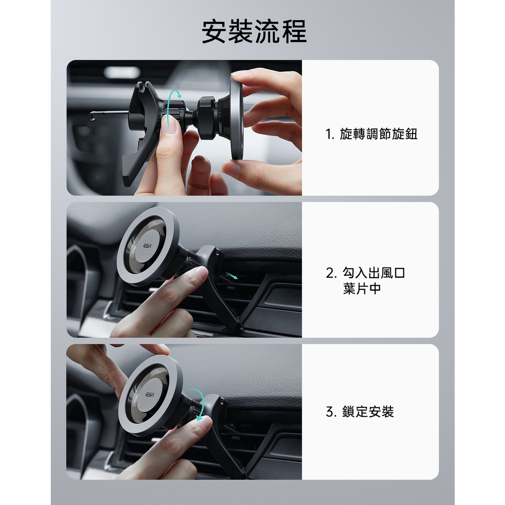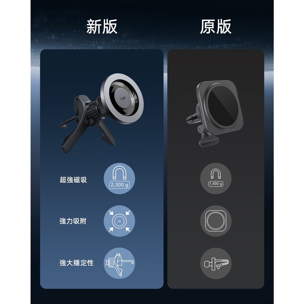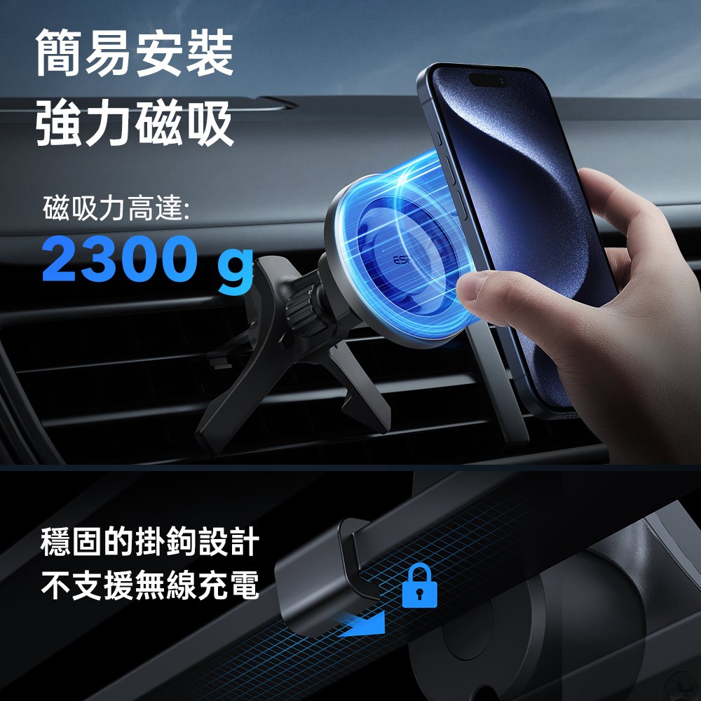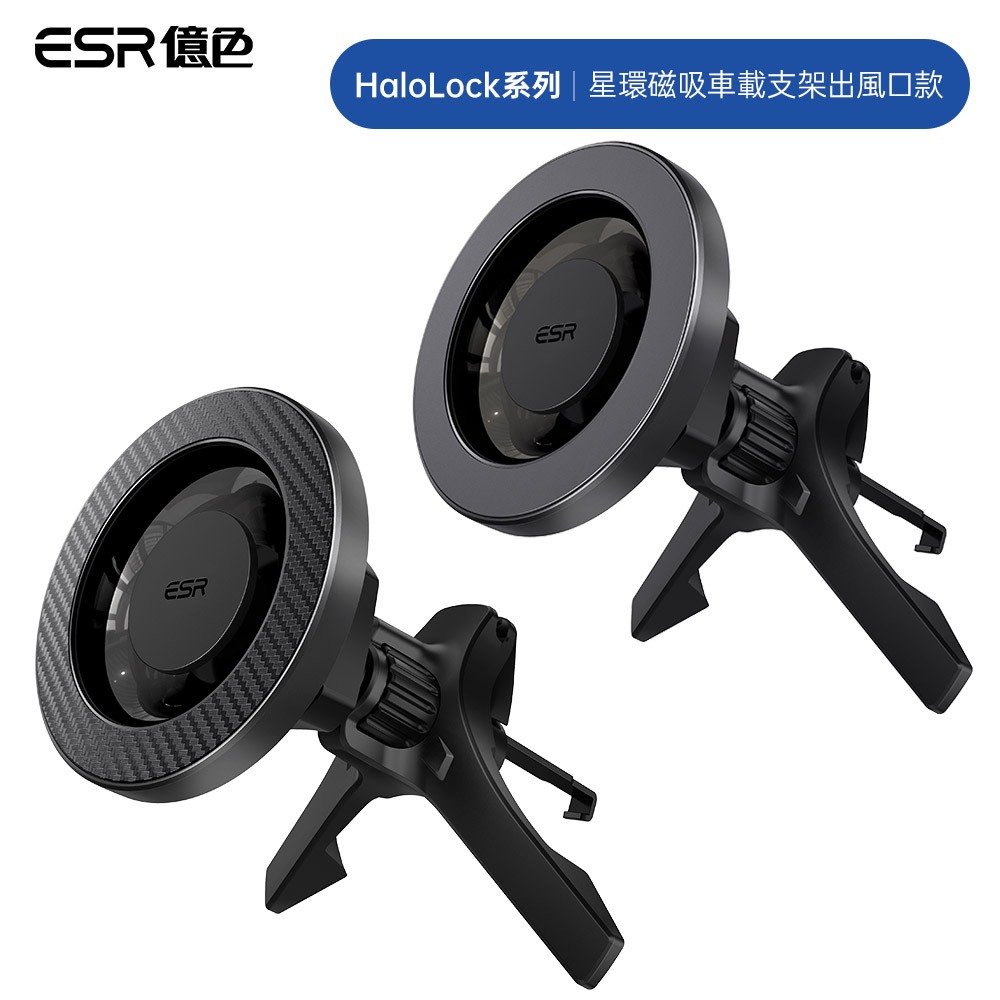 ESR億色 HaloLock 星環車載磁吸支架出風口款 2K604 手機支架銀河黑|酷黑碳紋Phone HoldersESR億色官方旗艦店