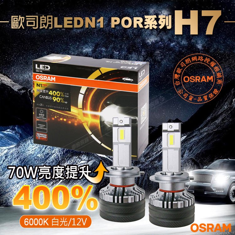 OSRAM歐司朗 N1 PRO加亮400% H7 汽車LED大燈 6000K /公司貨 (2入) 汽車燈泡 led燈OSRAM歐司朗 N1 PRO加亮400% H7 汽車LED大燈 6000K /公司貨 (2入) 汽車燈泡 led燈ElectronicsCARBUFF 車痴汽車用品