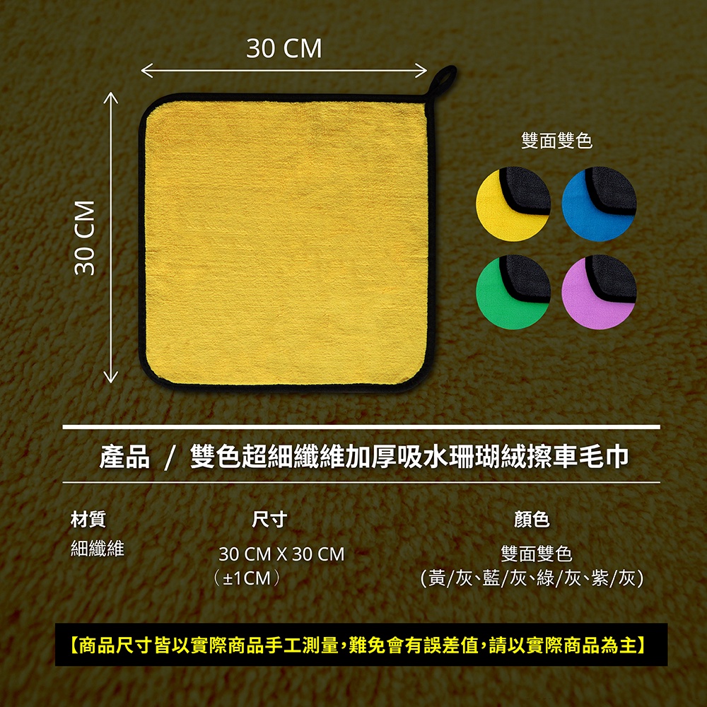 【車百購】 擦車巾 570GSM 超細纖 不掉毛 加厚吸水 珊瑚絨 雙色雙面 吸水巾 擦車布 吸水布 洗車布 洗車巾30*60CM(±1),紫/灰|30*30CM(±1),黃/灰|30*30CM(±1),紫/灰|30*60CM(±1),藍/灰|30*60CM(±1),綠/灰|30*30CM(±1),藍/灰|30*30CM(±1),綠/灰|30*60CM(±1),黃/灰Wash & WaxesCARPARTGO 車百購
