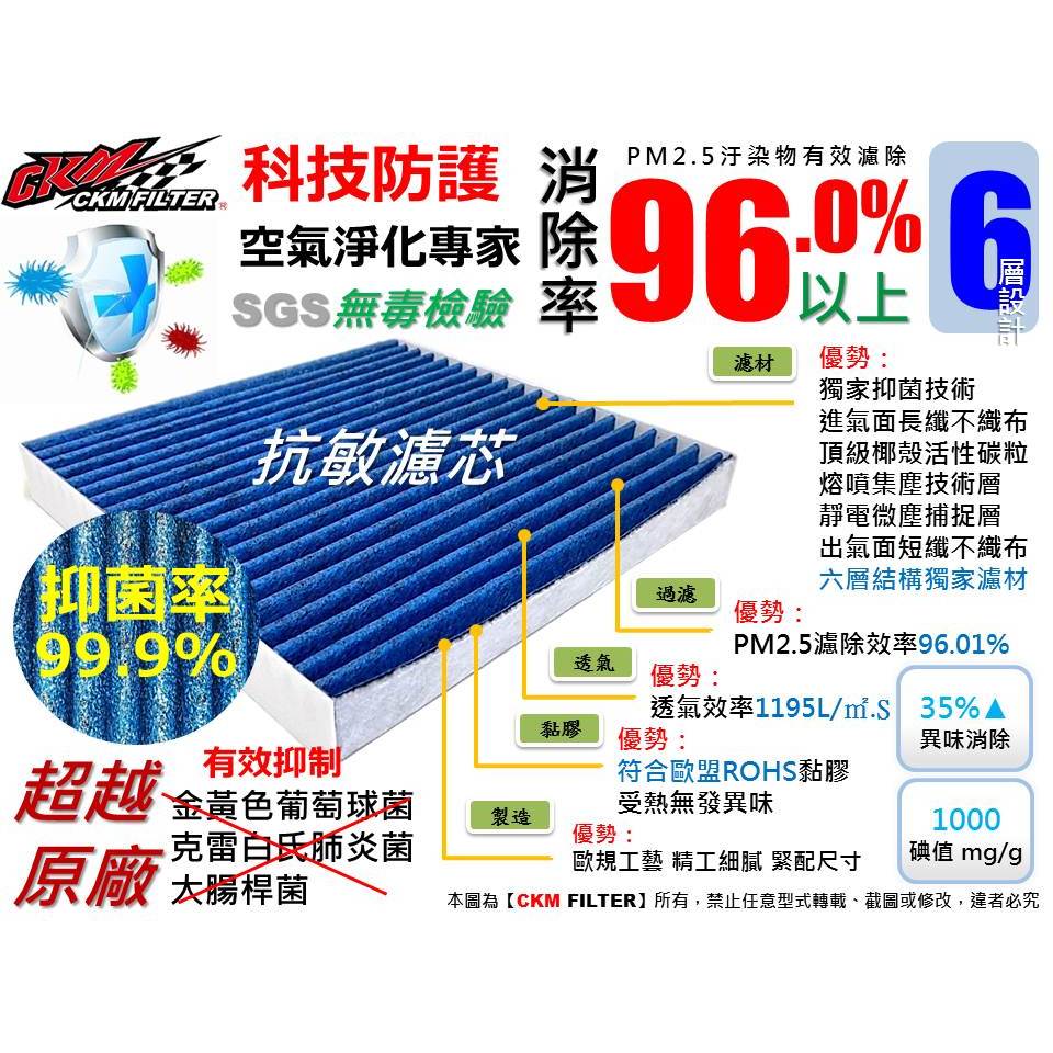 【CKM】6層 抗菌 福斯 VW GOLF 7代 8代 GTI PASSAT B8 T-ROC 活性碳冷氣濾網 空氣濾網
