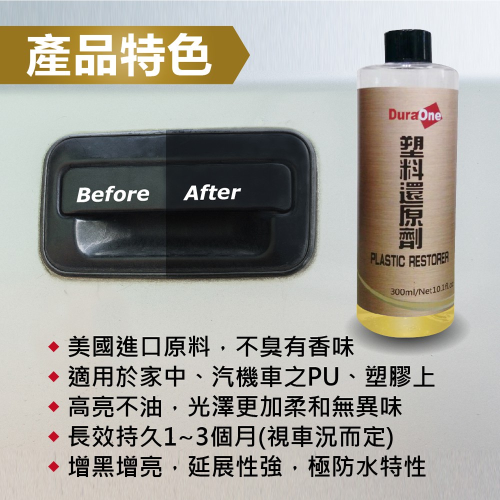 【DuraOne 都來玩】<還塑漂漂拳白化復原> 塑料還原劑 塑料保養 塑料翻新 塑膠還原 塑膠白化 膠條保護劑塑料還原劑 300ml + 銅鑼燒海綿OthersDuraOne 視覺玩家-專業汽機車美容館|汽車用品|美容|汽車鍍膜