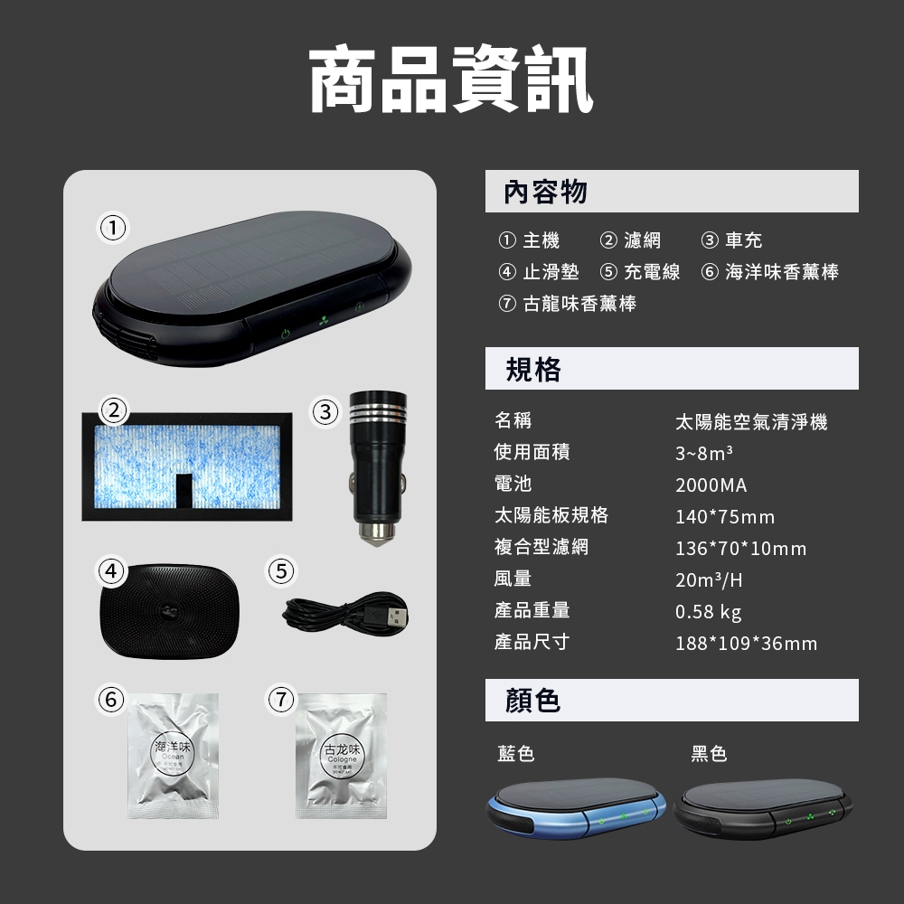 太陽能 光能清淨機 車用 空氣清淨機 清淨機 空氣清淨 空氣淨化器 負離子 空氣清淨機 除臭 除異味 淨化器黑色Perfumes, Air Fresheners & PurifiersDA量販店
