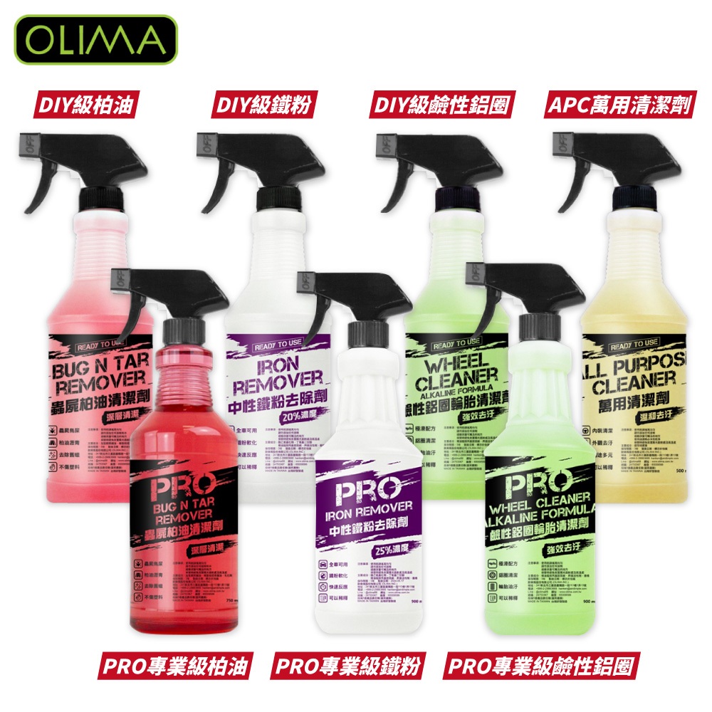 OLIMA 中性 洗車精 鐵粉去除劑 輪框清潔劑 鋁圈 鋁圈清潔劑 鐵粉 柏油去除劑 柏油 清潔劑 軟化劑 萬用清潔劑DIY 鐵粉去除劑 500ml[附噴頭]|PRO 鋁圈清潔劑 900ml[附噴頭]|DIY 鋁圈清潔劑 500ml[附噴頭]|PRO 鐵粉去除劑 900ml[附噴頭]|DIY 柏油去除劑 500ml[附噴頭]|PRO 柏油去除劑 750ml[附噴頭]|APC 萬用清潔劑 500ml[附噴頭]|DIY 泡沫洗車精 500ml|DIY 高濃縮雨刷精 80ml[x2罐]Tire & Wheel CareDA量販店
