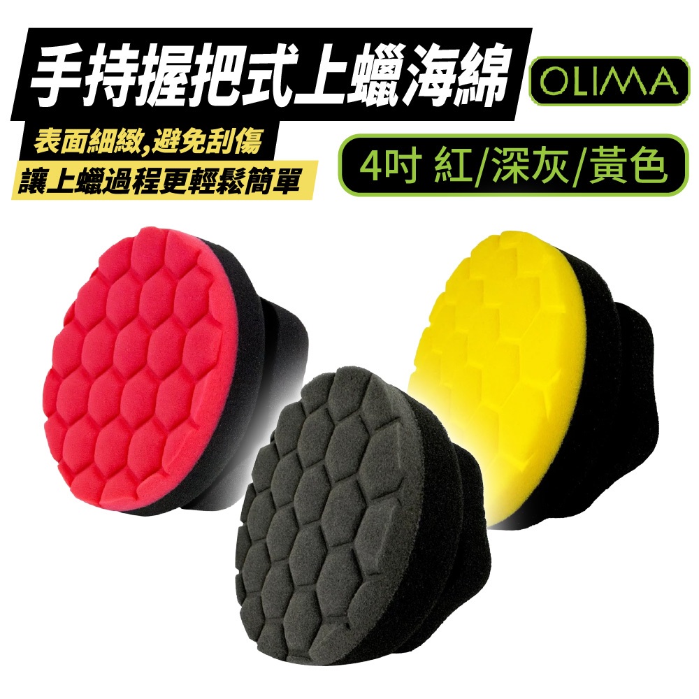 OLIMA 4吋 上蠟海綿 打蠟海綿 握把海綿 打蠟棉 鍍膜海綿 打蠟工具 打蠟 拋光棉 拋光海綿 銅鑼燒海 上蠟棉4寸 握把式 紅色 上蠟綿|4寸 握把式 黃色 上蠟綿|4寸 握把式深灰色 上蠟綿Wash & WaxesDA量販店