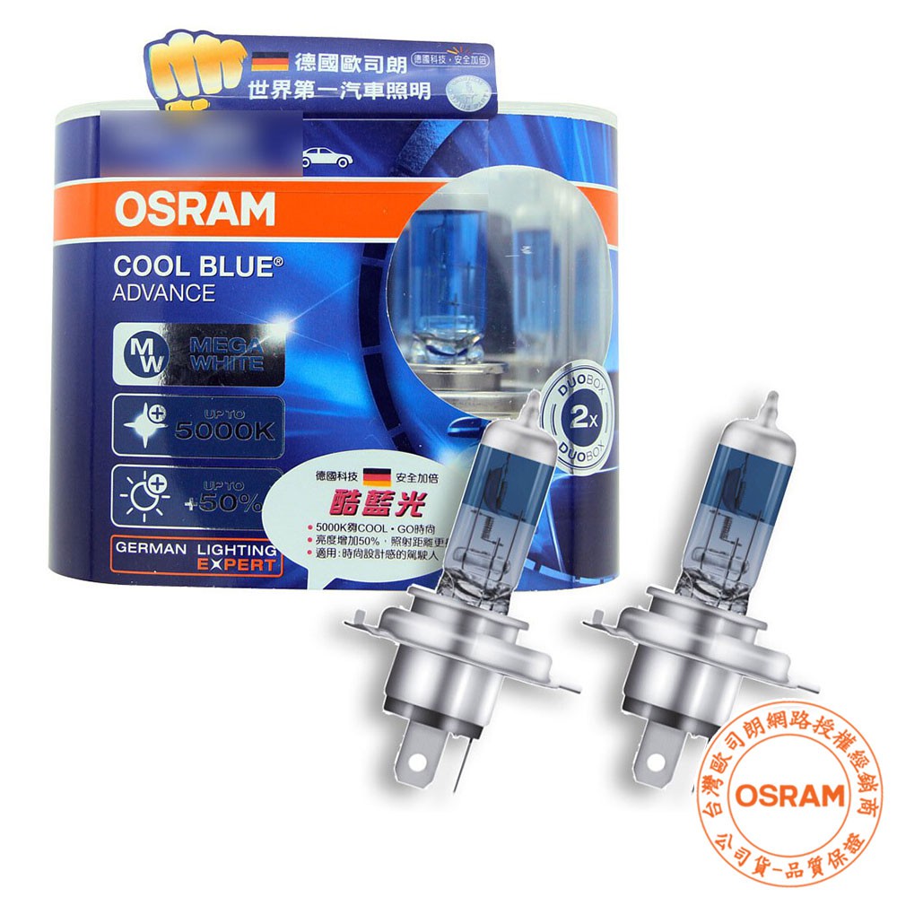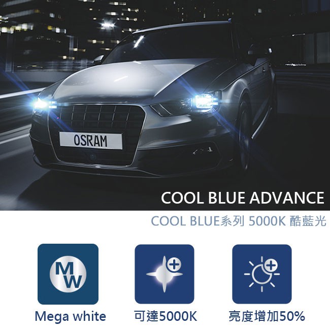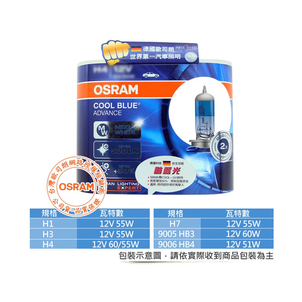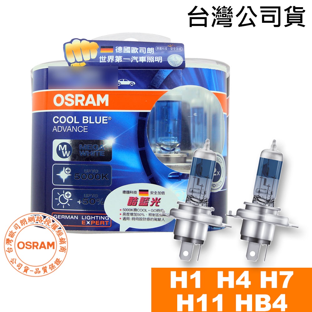 OSRAM歐司朗 酷藍光 5000K 加亮50%燈泡 汽車升級型鹵素大燈 H1/H4/H7/H11/HB4 台灣公司貨H1|H4|H7|9006/HB4|9005/HB3|H11ElectronicsCARBUFF 車痴汽車用品