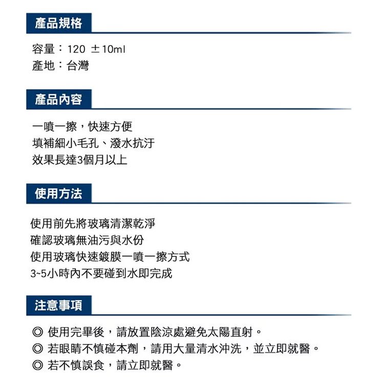 KT BIKER 玻璃快速鍍膜 120ml CAR009 玻璃鍍膜 玻璃 撥水劑 鍍膜劑 水鍍膜 防潑水 汽車美容KT BIKER 玻璃快速鍍膜 120ml CAR009 玻璃鍍膜 玻璃 撥水劑 鍍膜劑 水鍍膜 防潑水 汽車美容Glass Care & Water RepellentsCARBUFF 車痴汽車用品