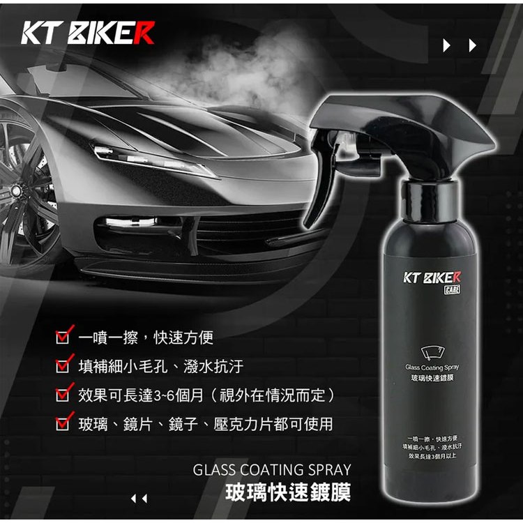 KT BIKER 玻璃快速鍍膜 120ml CAR009 玻璃鍍膜 玻璃 撥水劑 鍍膜劑 水鍍膜 防潑水 汽車美容