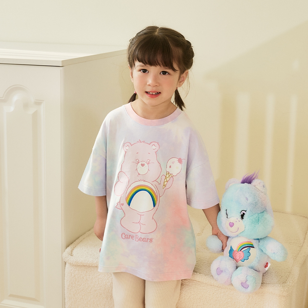 CACO-Cheer Bear紮染印花圖T‧親子款-童【J3CB004】90不分色,100|90不分色,110|90不分色,120|90不分色,130|90不分色,140|90不分色,150Topscaco_tw