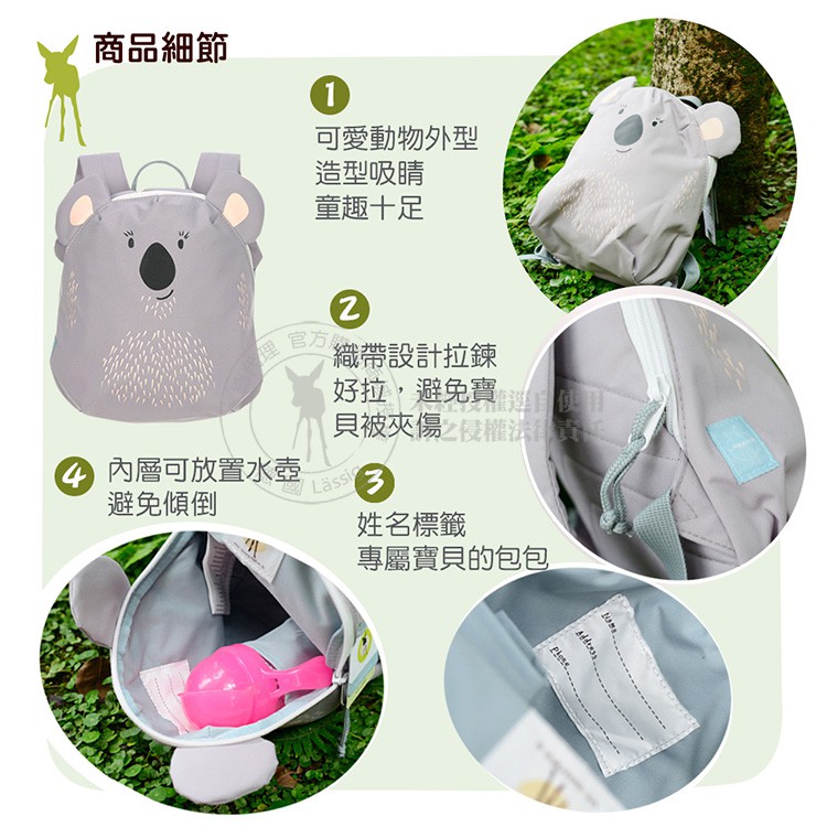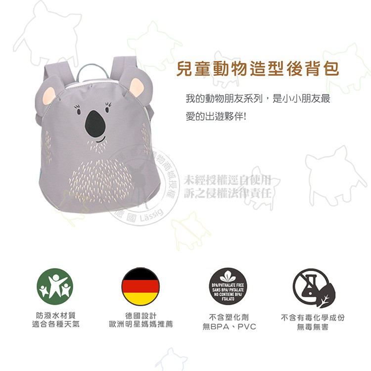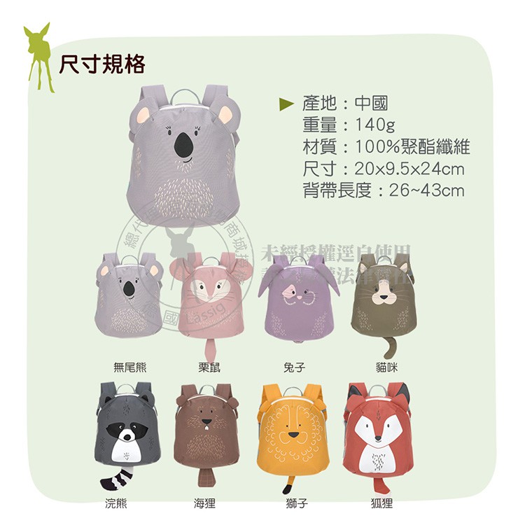 德國Lassig-兒童動物造型後背包(多款,男/女適用)無尾熊|海狸|浣熊|栗鼠|狐狸|獅子|兔子|貓咪|粉色三角龍|藍色三角龍|企鵝|鯨魚Bags & Luggagechicco官方直營-義大利嬰幼館