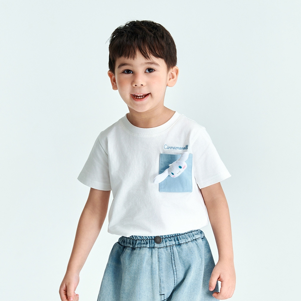CACO-大耳狗絨毛公仔口袋短T‧親子款-童【J3SA057】01白,100|01白,110|01白,120|01白,130|01白,140|01白,150Topscaco_tw