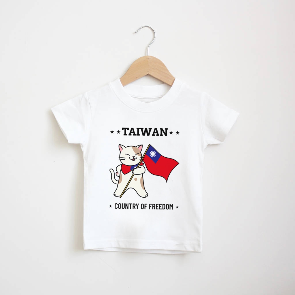 TAIWAN COUNTRY FREEDOM 兒童短袖T恤 白色 我愛台灣童裝嬰幼兒禮物自由國旗貓咪CAT親子裝活動110cm|120cm|130cm|140cm|150cmTopsdirtysweet