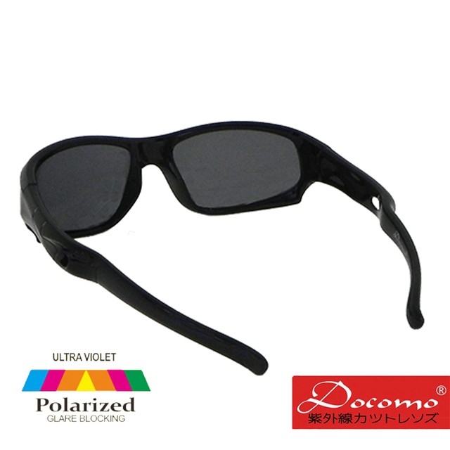Docomo橡膠兒童運動眼鏡 高等級偏光鏡片 專業太陽眼鏡設計款 配戴超舒適 質感黑色 抗UV400