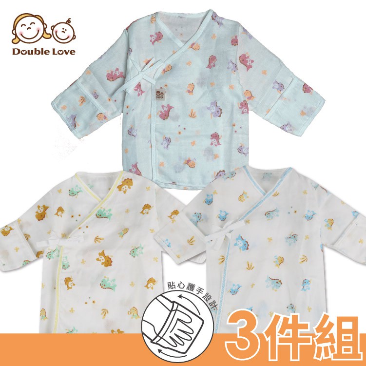 DL哆愛 台灣製 紗布衣 嬰兒 新生兒紗布衣 包手 (三件組) 新生兒服 嬰兒衣服 寶寶衣服 紗布衣新生兒 嬰兒紗布衣藍恐龍X3|粉恐龍X3|黃恐龍X3|恐龍藍X2黃X1|恐龍粉X2黃X1TopsDoubleLove哆愛母嬰官方旗鑑店