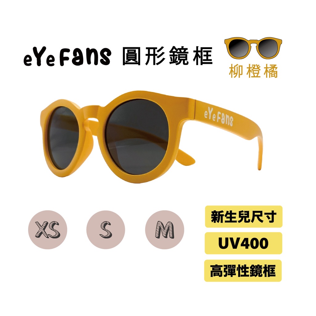 eYeFANS 圓框 兒童UV400太陽眼鏡 柳橙橘 高彈性橡膠 XS.S.M號(0~6歲) 親子墨鏡 官方授權店