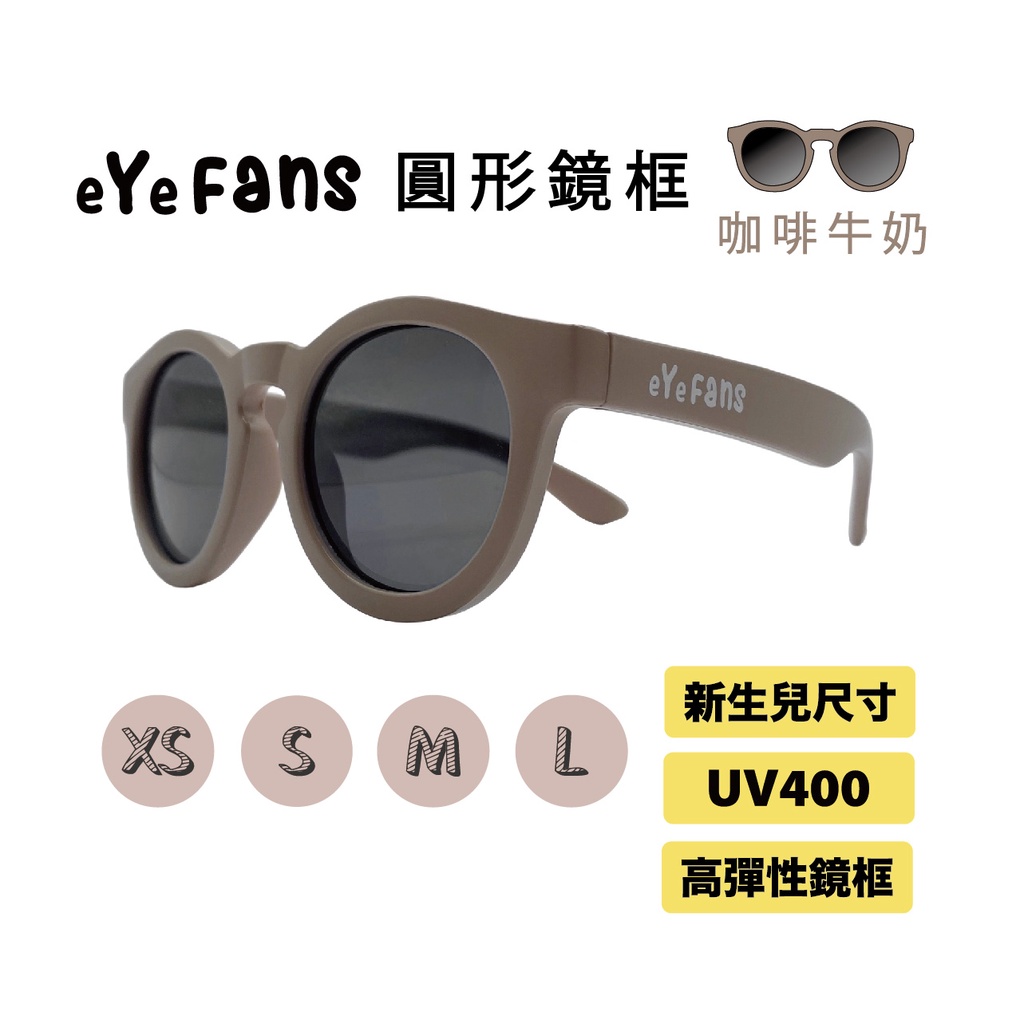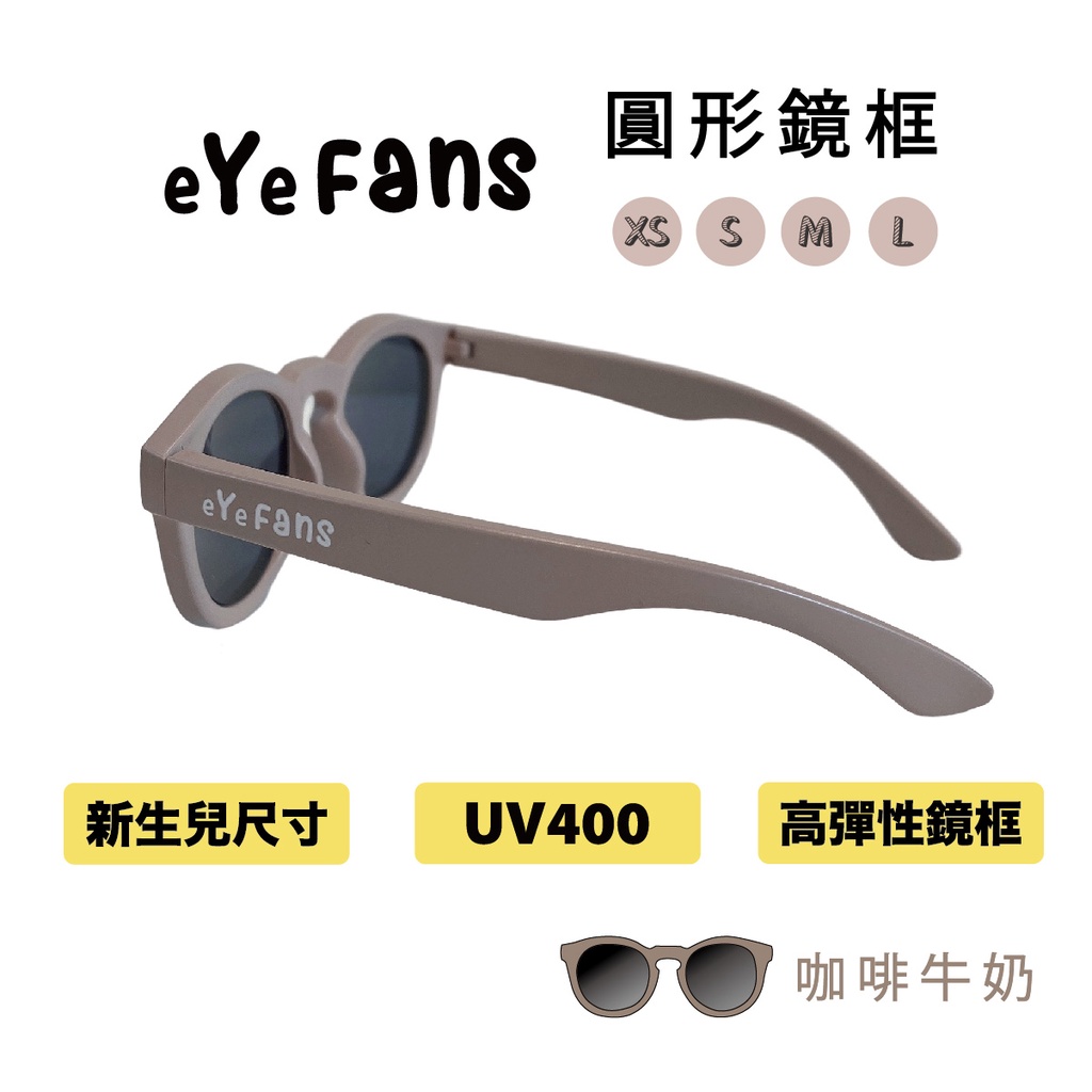 eYeFANS 圓框 兒童UV400太陽眼鏡 咖啡牛奶色 高彈性橡膠 XS.S.M.L(0~成人) 親子墨鏡 官方授權店S(1-2.5Y)|M(3-6Y)|L(7+成人)|XS(0-1Y)EyeweareYeFANS(官方授權店)