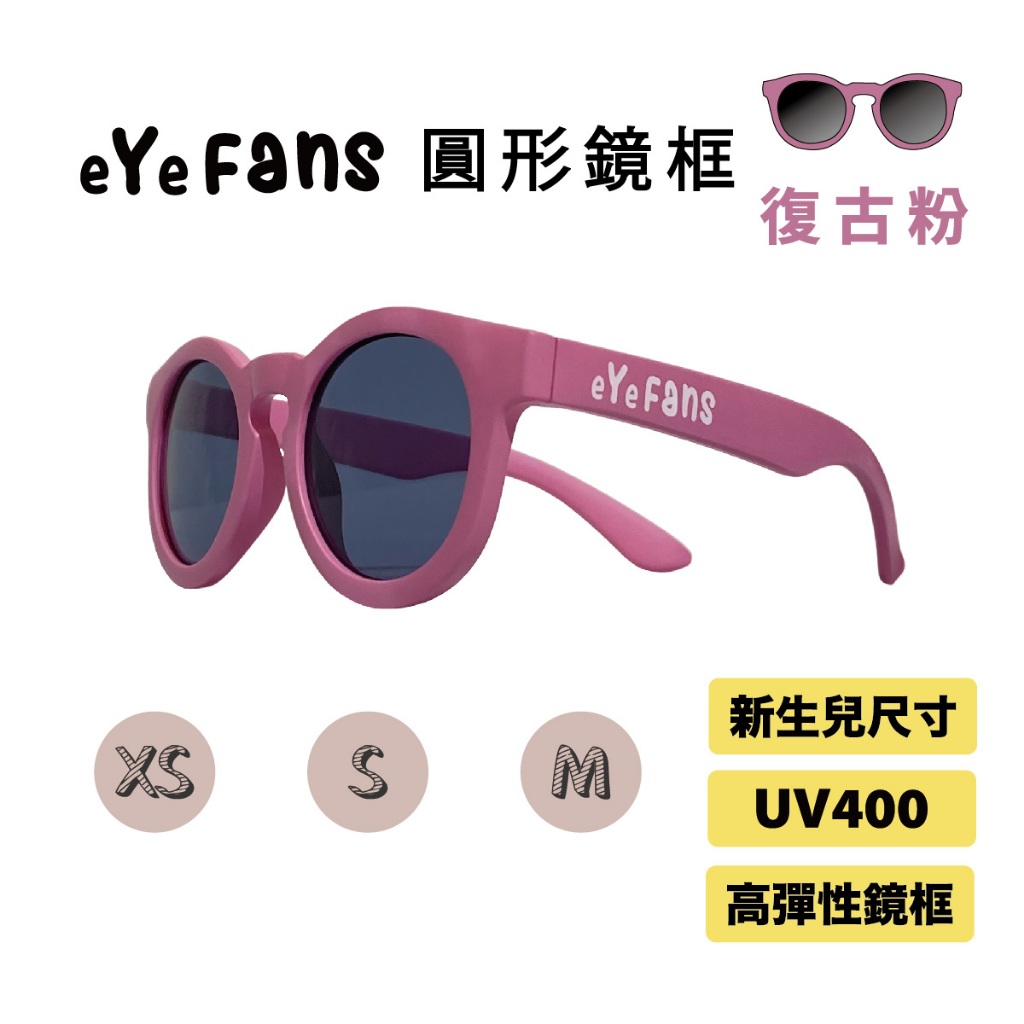 eYeFANS 圓框 兒童UV400太陽眼鏡 復古粉 高彈性橡膠 XS.S.M號(0~6歲) 親子墨鏡 官方授權店S(1-2.5Y)|M(3-6Y)|XS(0-1Y)EyeweareYeFANS(官方授權店)