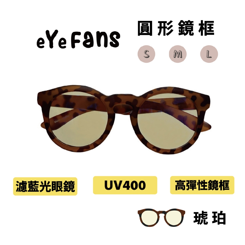 eYeFANS 兒童&成人 UV400濾藍光眼鏡 圓框琥珀 高彈性橡膠 S.M.L. 官方授權店大尺寸(適合7y以上,大人ok)|中尺寸(適合3-6y)|小尺寸(適合1.5-3y)EyeweareYeFANS(官方授權店)