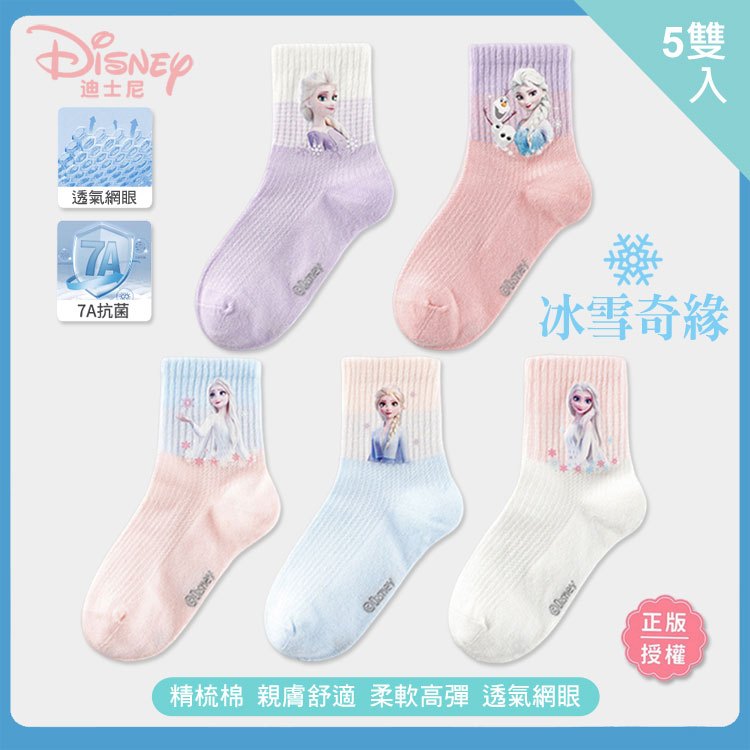 冰雪奇緣 精梳棉抗菌 童襪 (5雙) ELSA 愛莎 兒童襪子 迪士尼正版授權【DK大王】16~18cm, DSP3538/5雙|18~20cm, DSP3538/5雙|20~22cm, DSP3538/5雙SocksDK大王旗艦店
