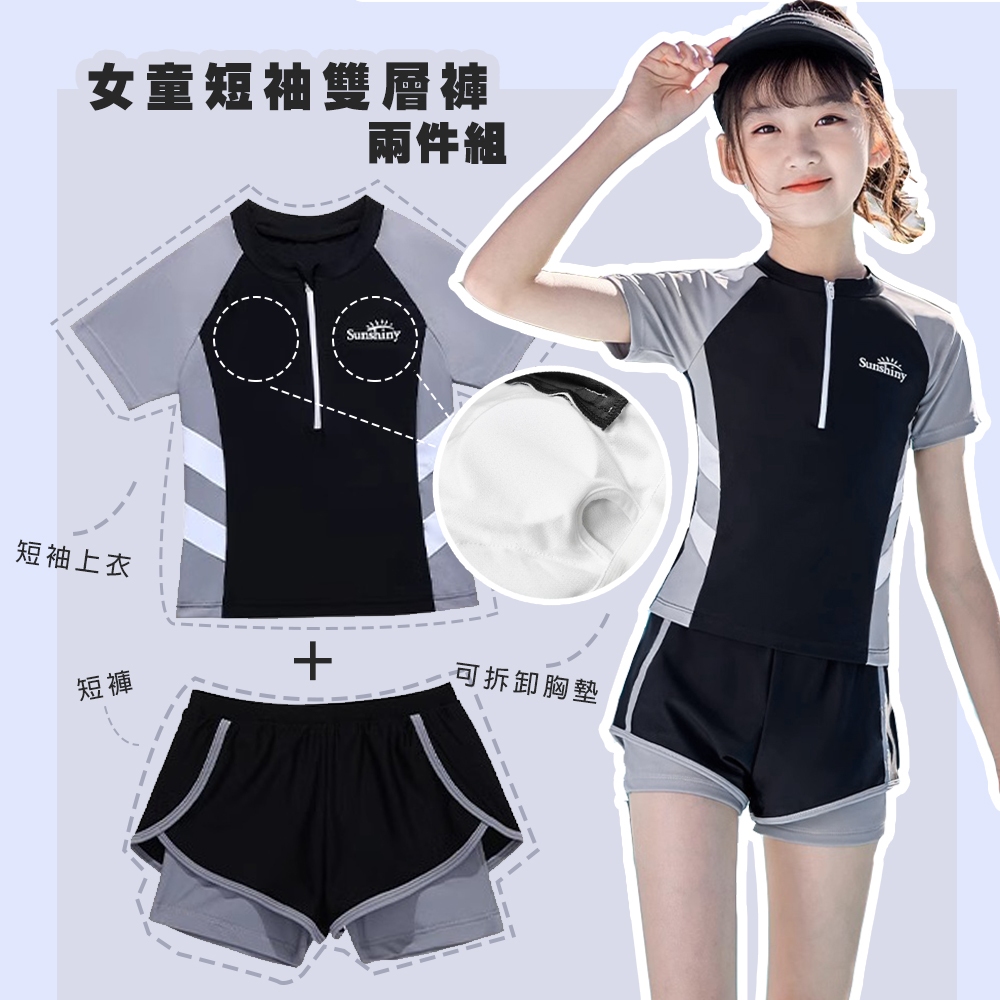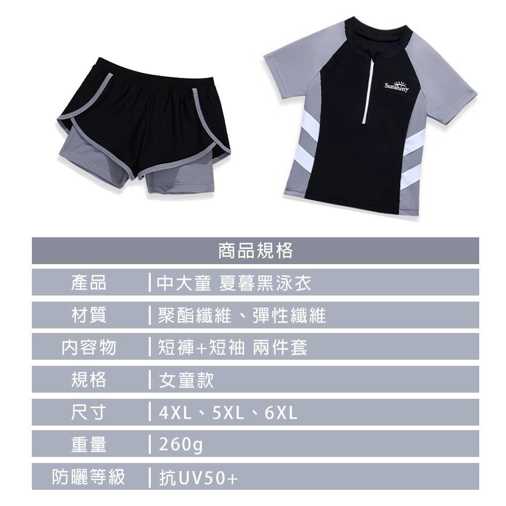 【DAYOU】兒童泳衣 夏暮黑女孩 兩件式泳衣 大童 青少年 泳裝 速乾泳裝 防曬泳衣 女生款式 D0403062