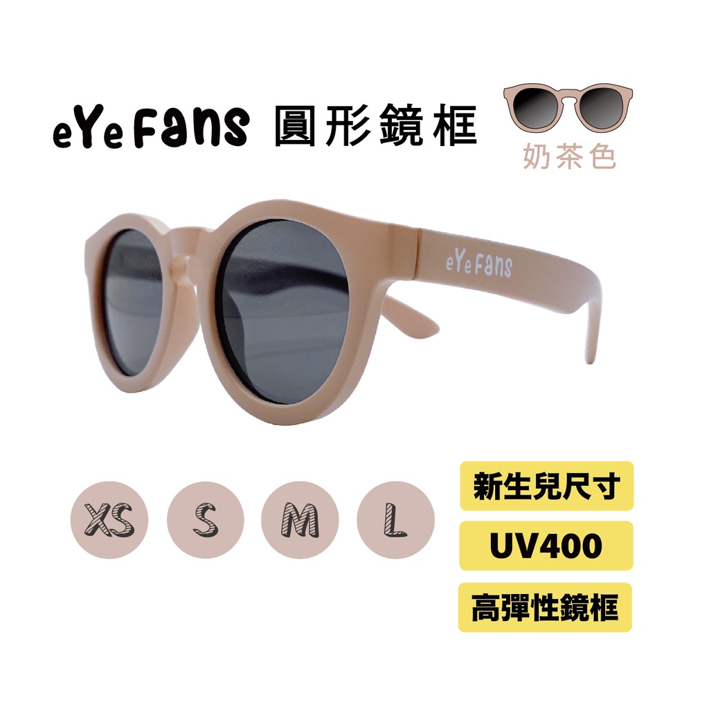 eYeFANS 圓框 兒童UV400太陽眼鏡 奶茶色 高彈性橡膠 XS.S.M.L號(0~成人) 親子墨鏡 官方授權店M(3-6Y)|XS(0-1Y)|S(1-2.5Y)|L(7+成人)EyeweareYeFANS(官方授權店)