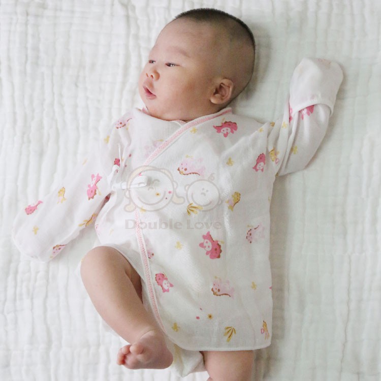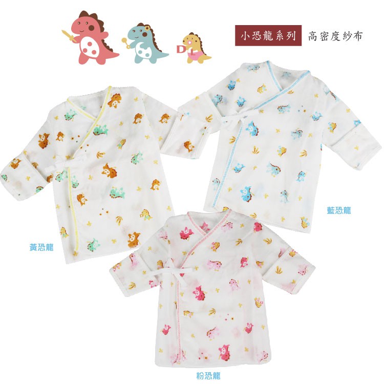 哆愛台灣製 紗布衣 包手 新生兒服 嬰兒衣服 寶寶衣服 紗布衣 新生兒紗布衣 紗布衣新生兒 嬰兒紗布衣【GA0019】藍恐龍|黃恐龍|粉恐龍TopsDoubleLove哆愛母嬰官方旗鑑店