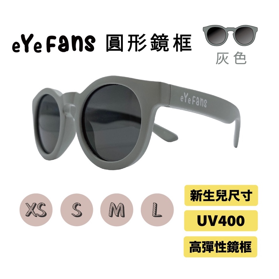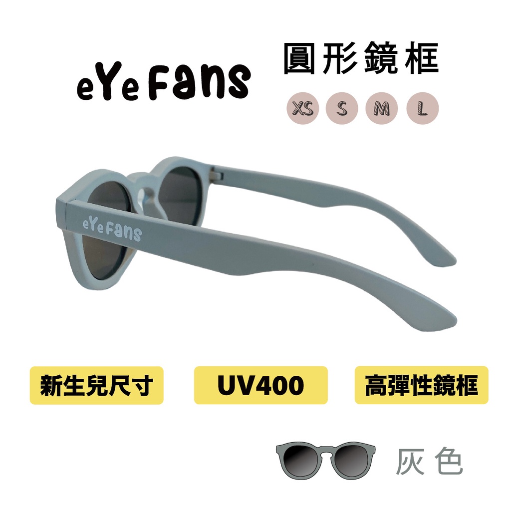 eYeFANS 圓框 兒童UV400太陽眼鏡 灰色 高彈性橡膠 XS.S.M.L號(0~成人) 親子墨鏡 官方授權店S(1-3y)|XS(0-1y)|L(7+成人)|M(3-5y)EyeweareYeFANS(官方授權店)