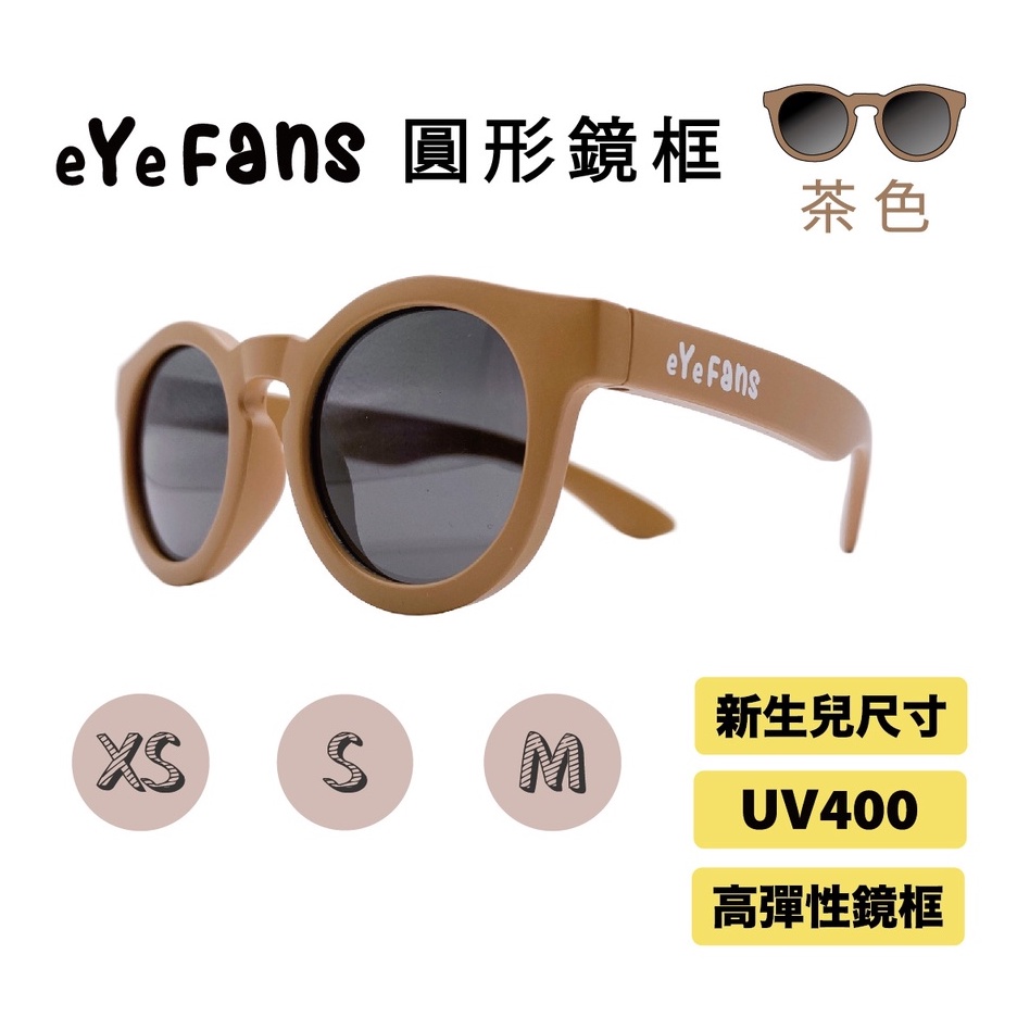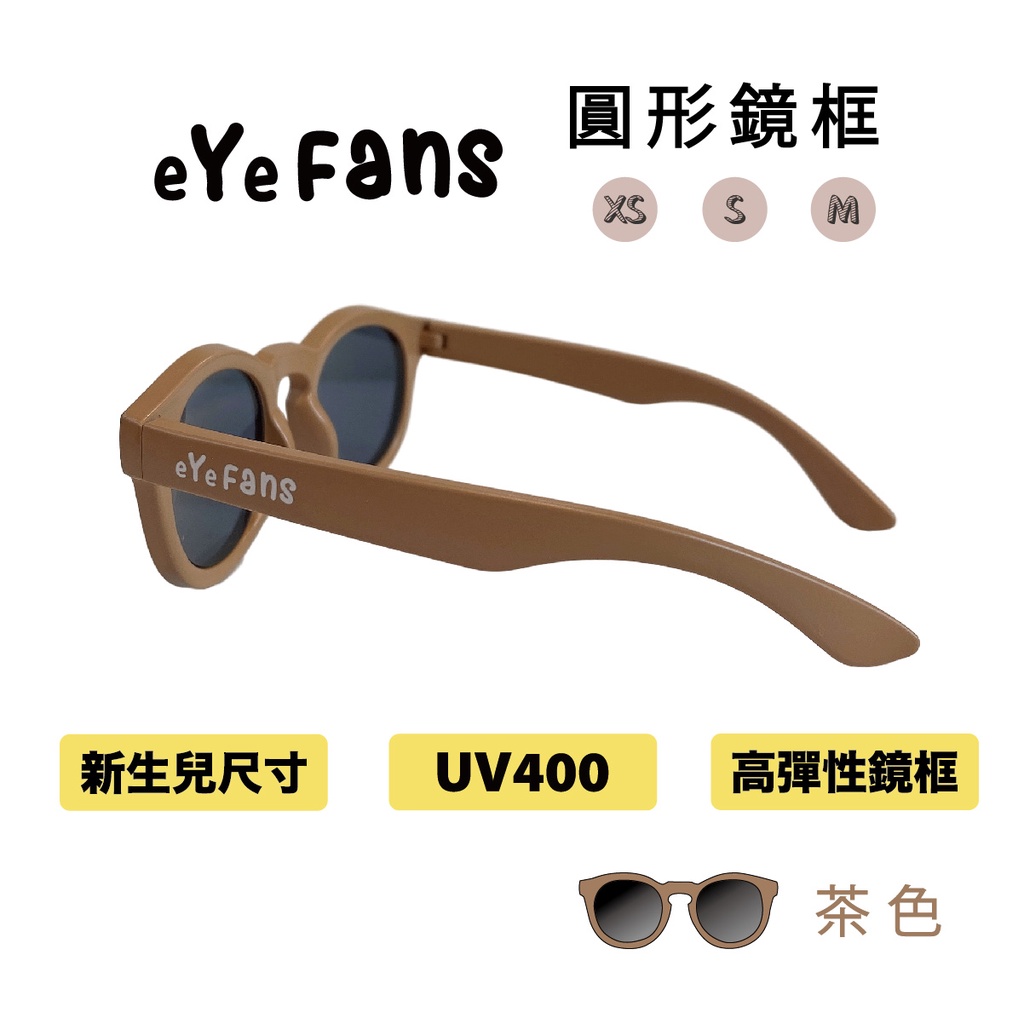 eYeFANS 圓框 兒童UV400太陽眼鏡 茶色 高彈性橡膠 XS.S.M號(0~6歲) 親子墨鏡 官方授權店M(3-6Y)|XS(0-1Y)|S(1-2.5Y)EyeweareYeFANS(官方授權店)