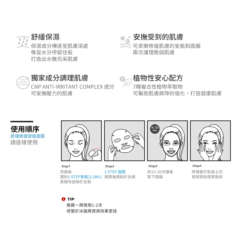 【CNP Laboratory】單片安瓶面膜|品牌旗艦店積雪草淨透|維他命激亮白皙|舒緩修復|蜂膠彈潤Face Mask & PacksCNP 官方直營店