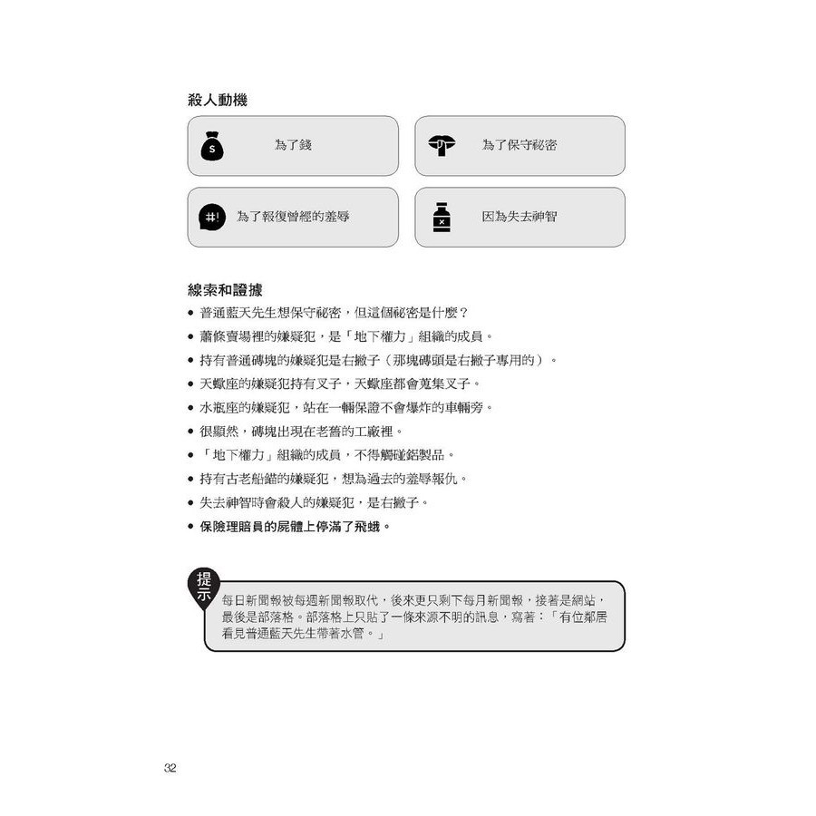 每天破一起謀殺案 2: 100道懸案等你破解, 車上床上廁上最佳娛樂, 觀察力、推理與歸納能力大增, 犀利的你永遠直指真相/G. T. Karber eslite誠品每天破一起謀殺案 2: 100道懸案等你破解, 車上床上廁上最佳娛樂, 觀察力、推理與歸納能力大增, 犀利的你永遠直指真相/G. T. Karber eslite誠品Hobbieseslite 誠品