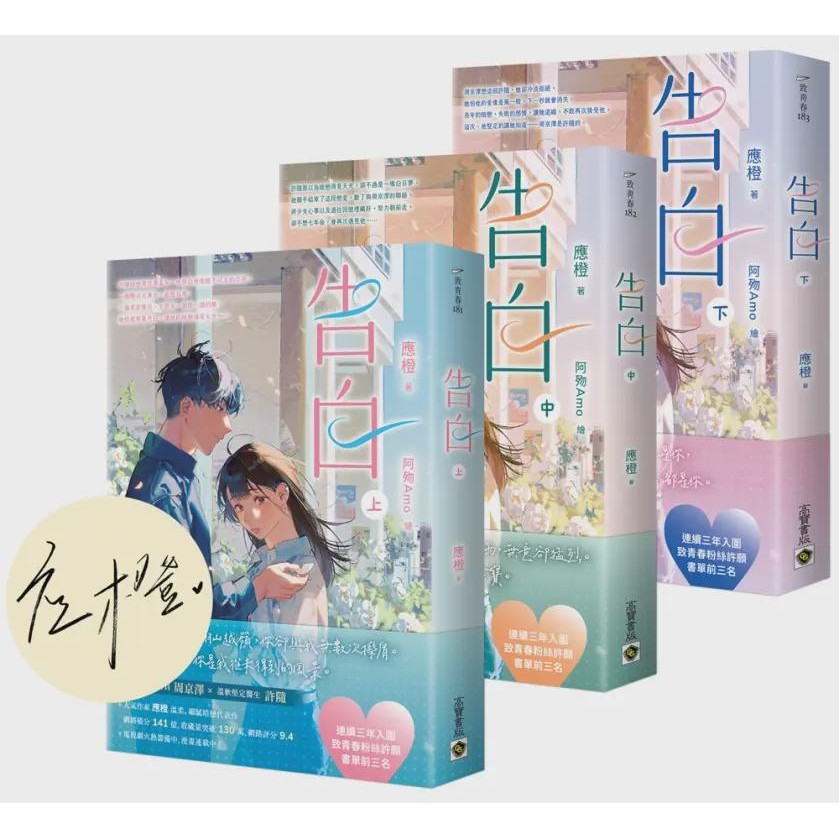 告白 上中下 (首刷印簽版/3冊合售)/應橙 eslite誠品告白 上中下 (首刷印簽版/3冊合售)/應橙 eslite誠品Romanceeslite 誠品