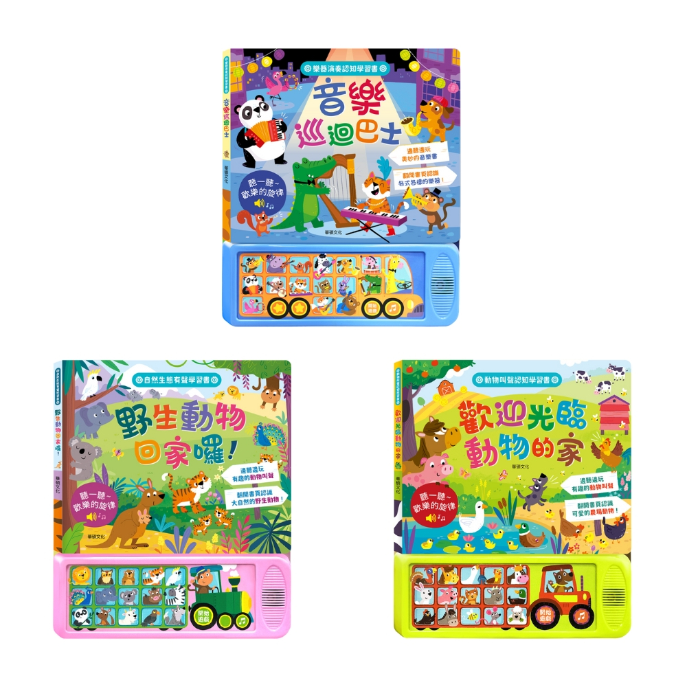 【華碩文化】有聲認知學習書 音樂巡迴巴士/野生動物回家囉!/歡迎光臨動物的家