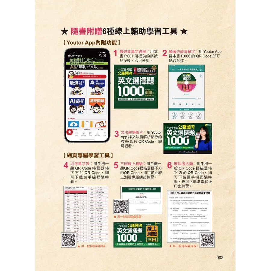 一定會考的公職國考英文選擇題1,000 (附最強背單字神器/躺著也能背單字音檔/必背單字表下載/三回線上測驗/文法教學影片/歷屆考古題下載)/胡欣蘭 eslite誠品一定會考的公職國考英文選擇題1,000 (附最強背單字神器/躺著也能背單字音檔/必背單字表下載/三回線上測驗/文法教學影片/歷屆考古題下載)/胡欣蘭 eslite誠品Education & Schooleslite 誠品